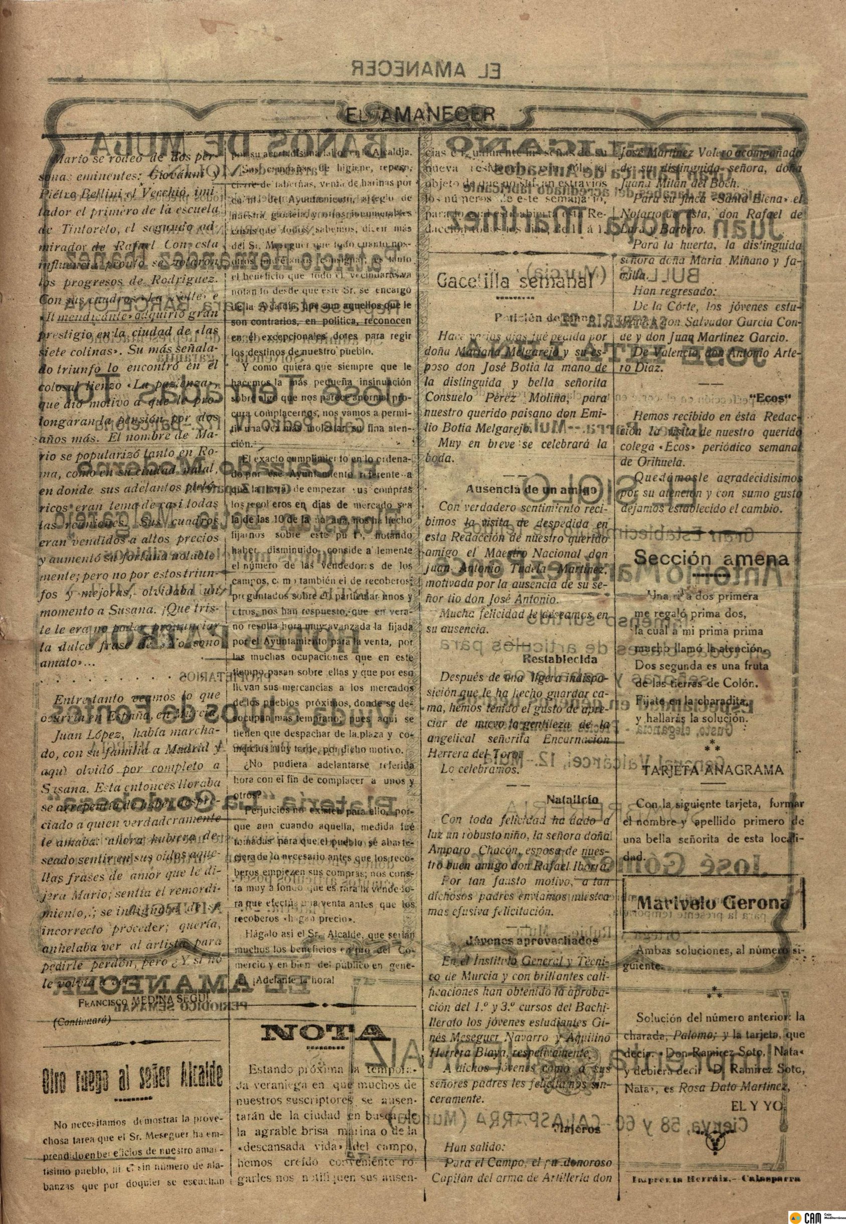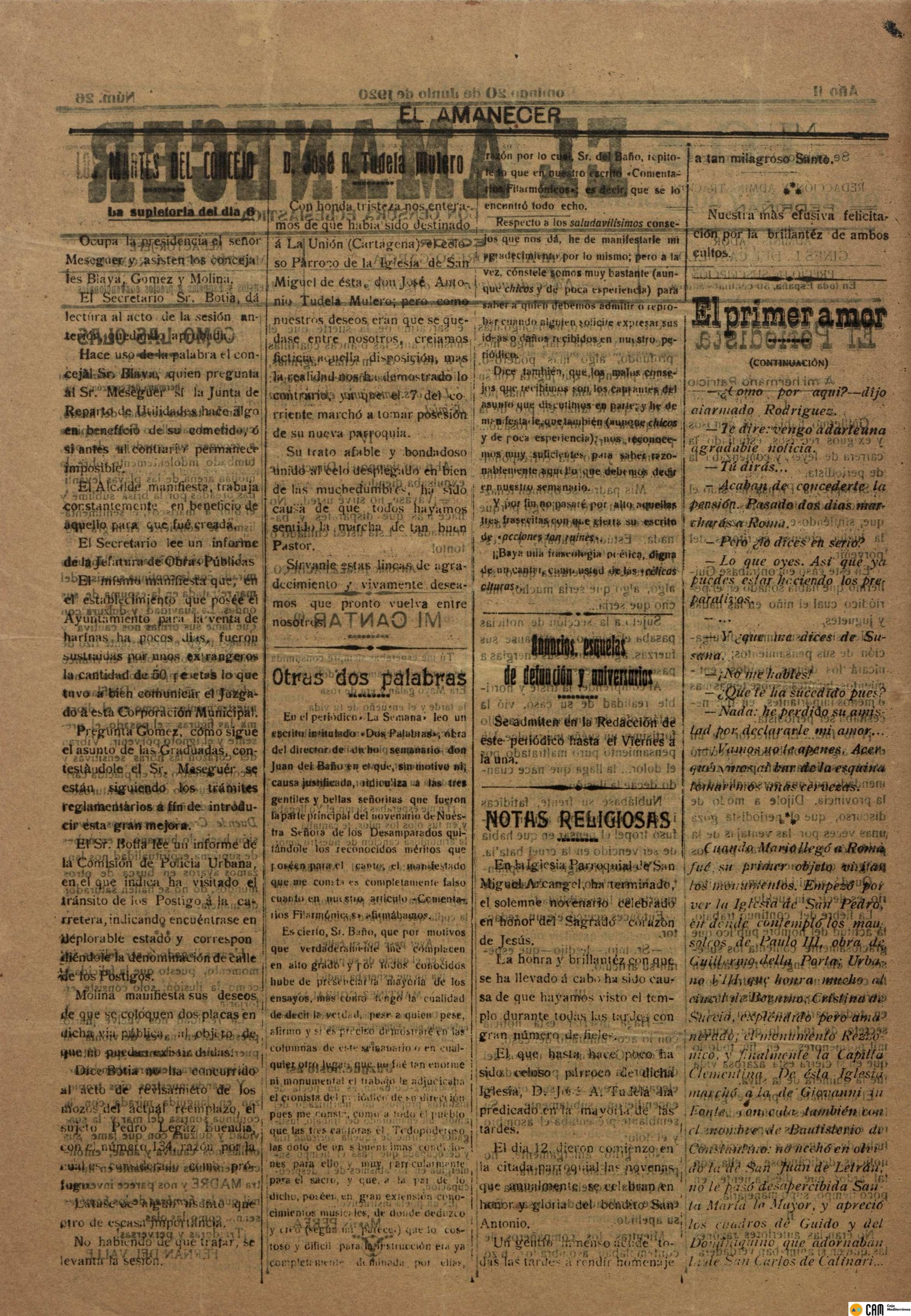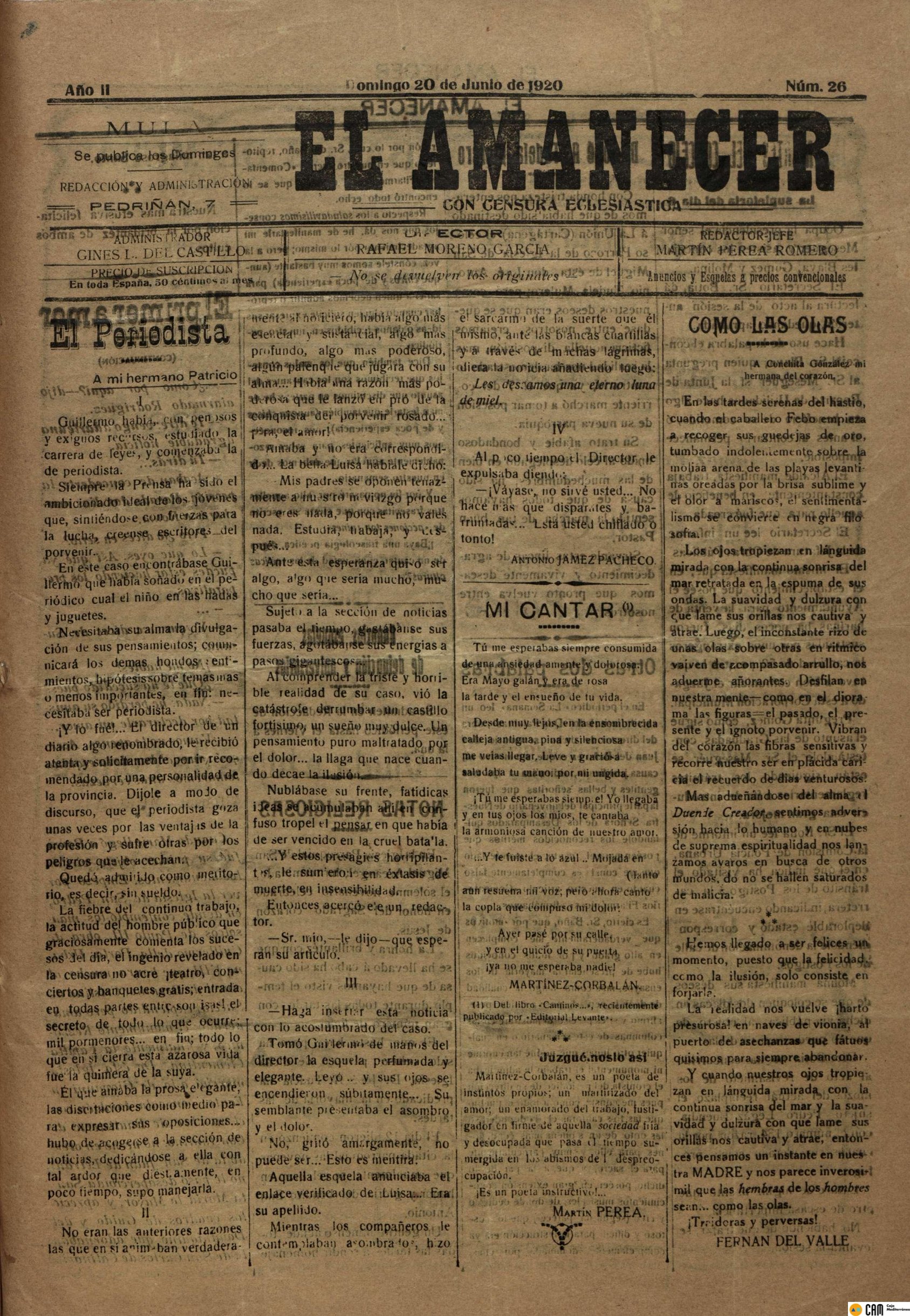 Periodico de Mula el Amanecer nº26 20 Junio de 1920