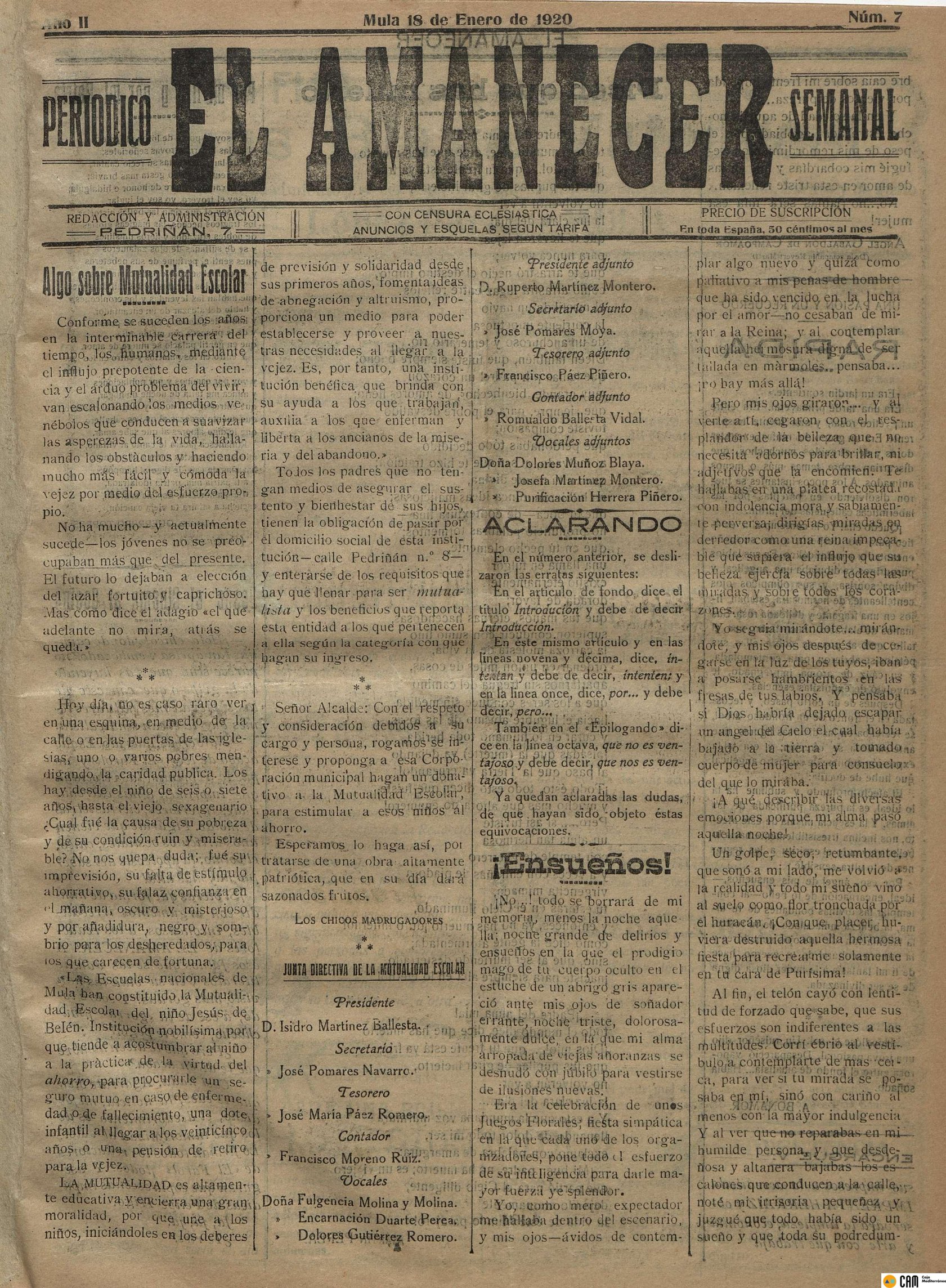 Periodico de Mula el Amanecer nº7 18 de Enero de 1920 Periodico Muleño ,El Amanecer Previous Article Periodico de Mula el Amanecer nº8 25 de Enero de 1920 Next Article Periodico de Mula el amanecer nº6 11 de Enero de 1920 Typography Smaller Small Medium Big Bigger Default Helvetica Segoe Georgia Times Reading Mode Share This Previous Article Periodico de Mula el Amanecer nº8 25 de Enero de 1920 Next Article Periodico de Mula el amanecer nº6 11 de Enero de 1920
