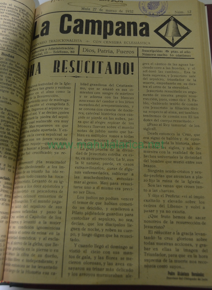 Periodico de Mula La Campana nº12 27 Marzo de 1932