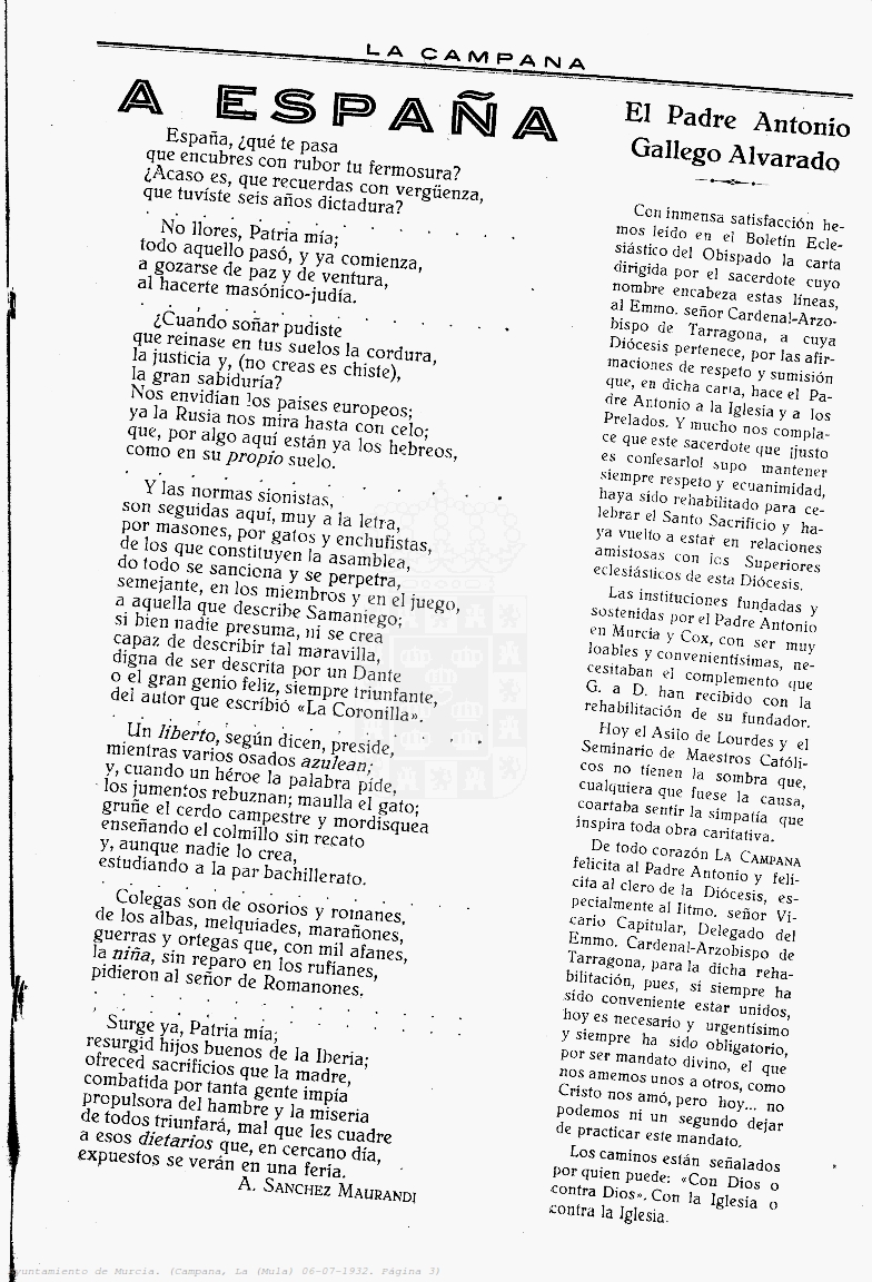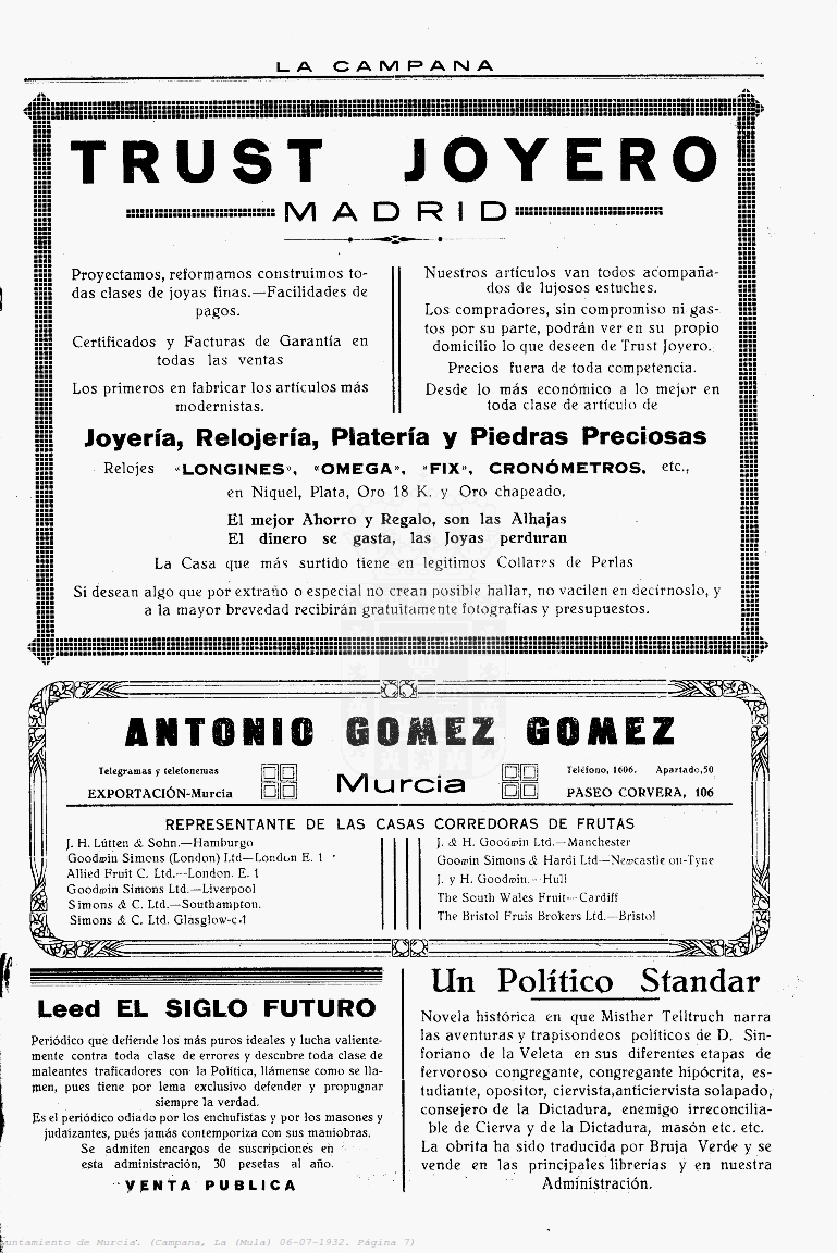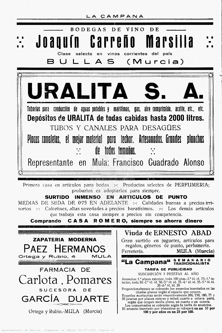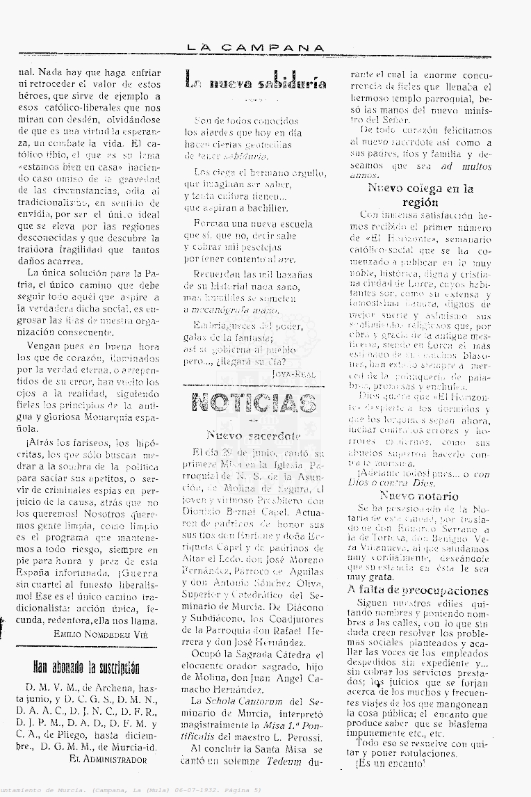 Periodico de Mula La Campana nº25 6 Julio de 1932