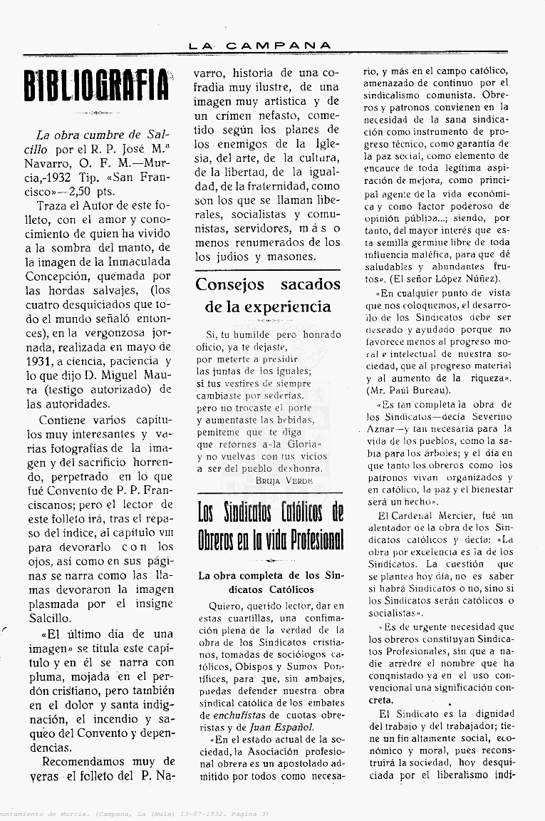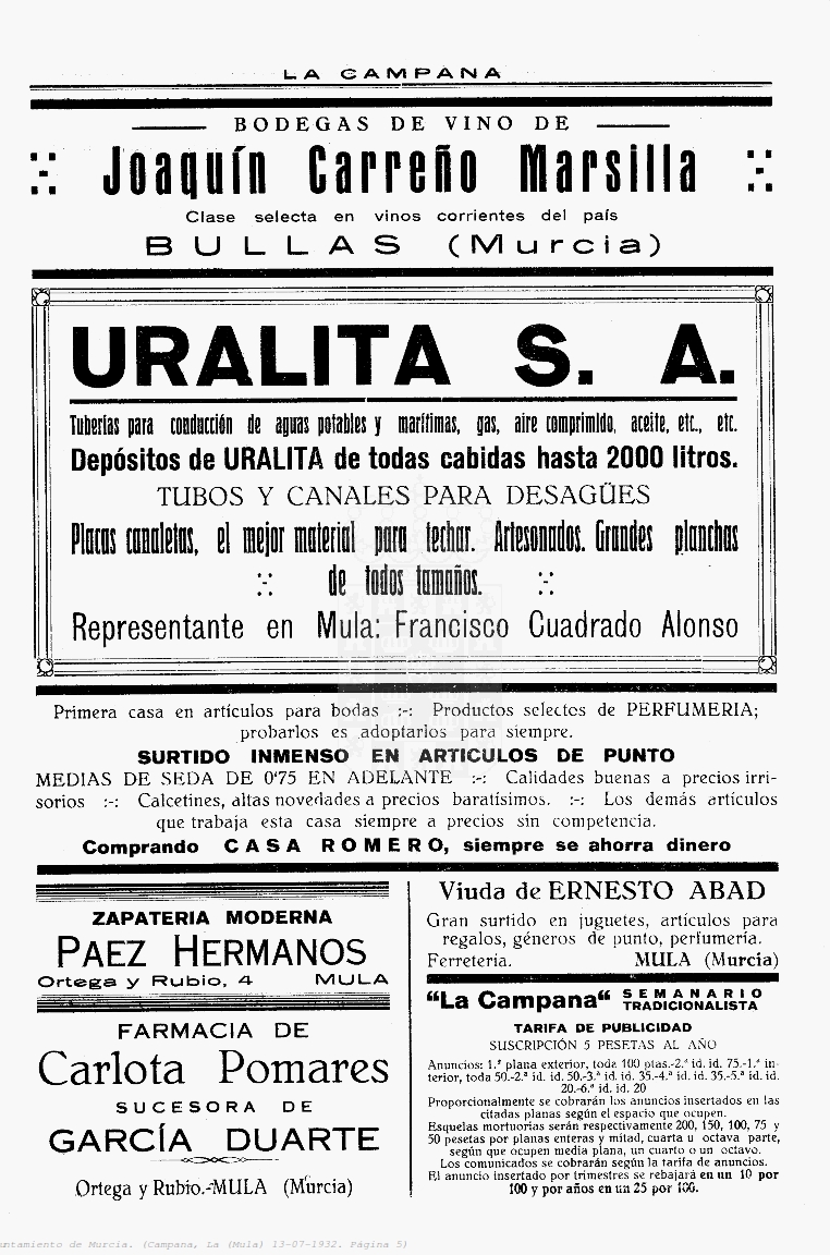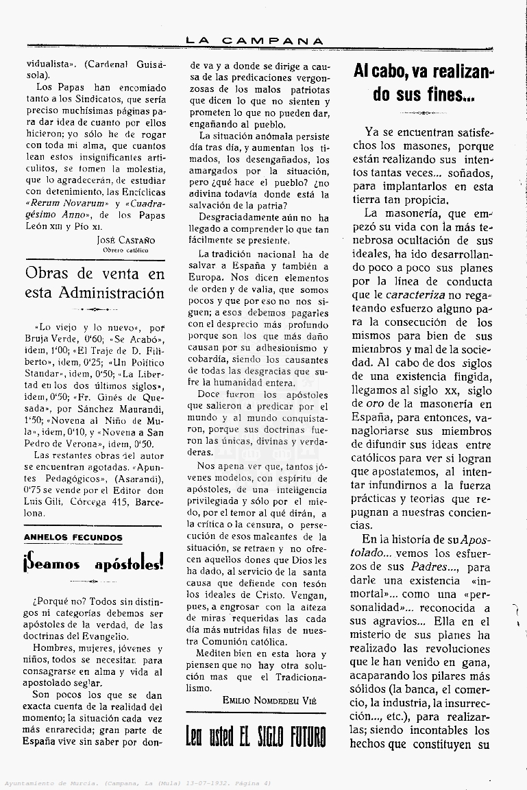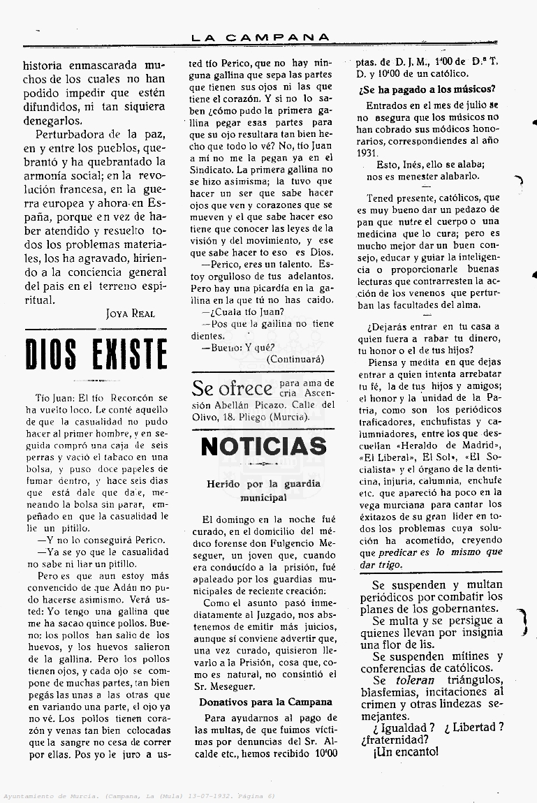 Periodico de Mula La Campana nº26 13 Julio de 1932