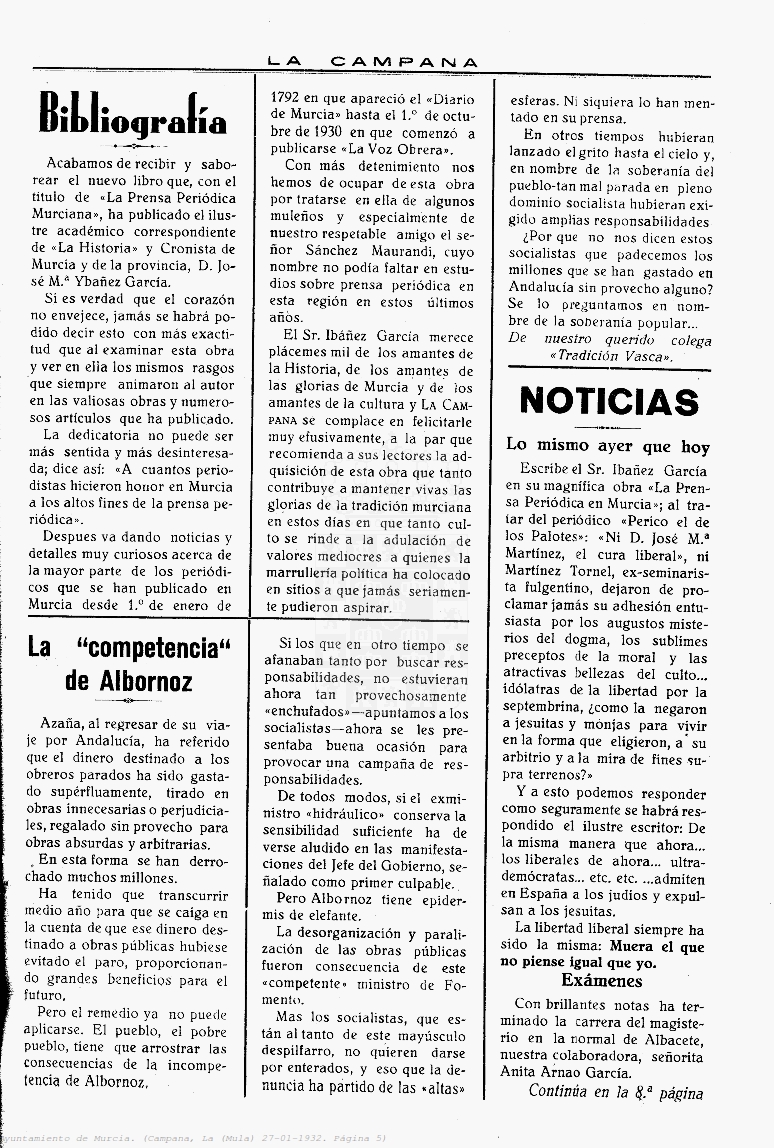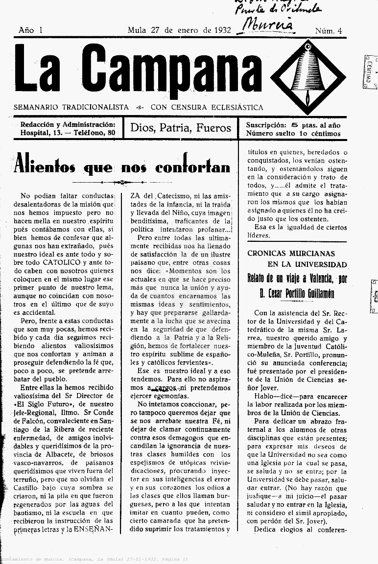 Periodico de Mula La Campana nº4 27 Enero de 1932