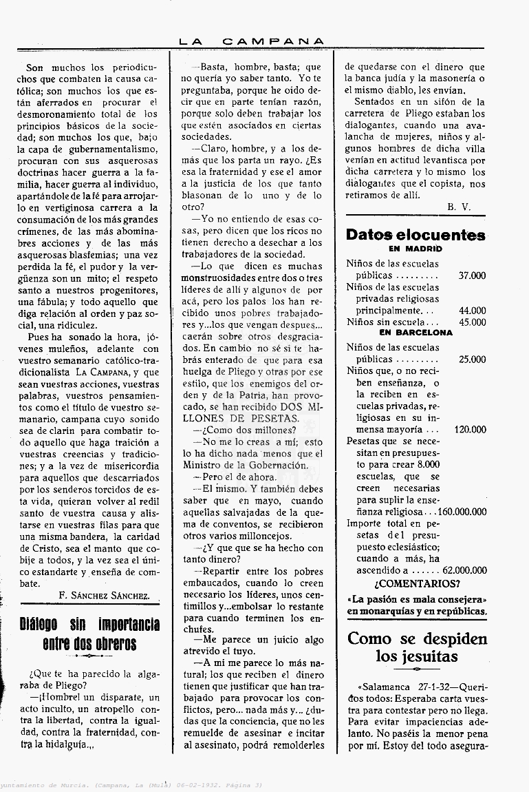 Artículo anterior: Periodico de Mula La Campana nº6 13 Febrero de 1932 Anterior Artículo siguiente: Periodico de Mula La Campana nº4 27 Enero de 1932 Siguiente