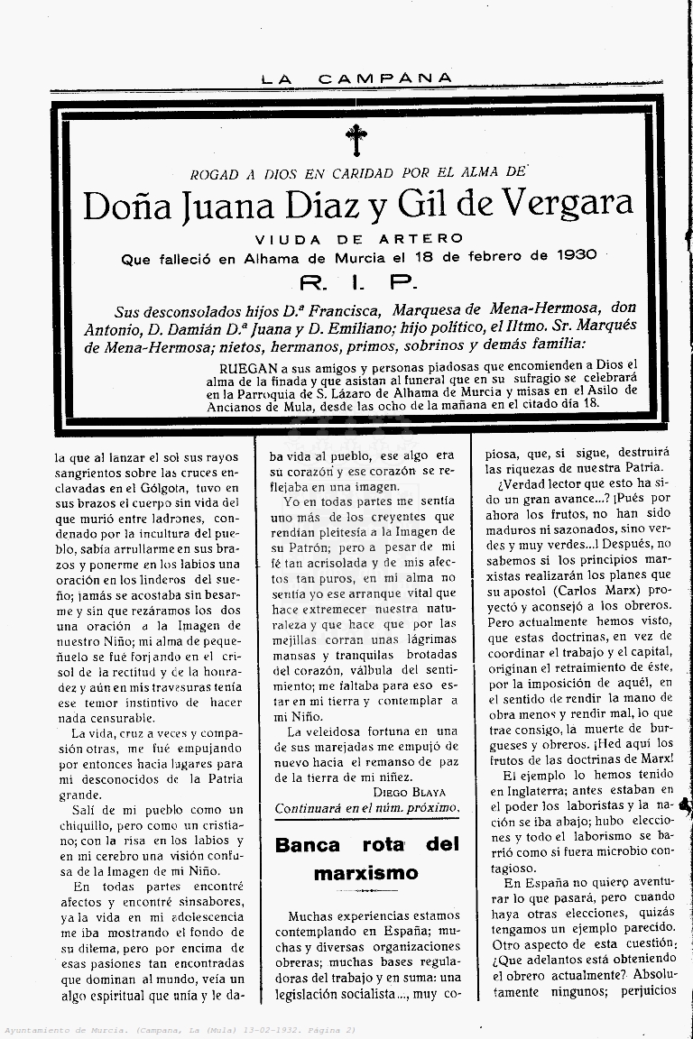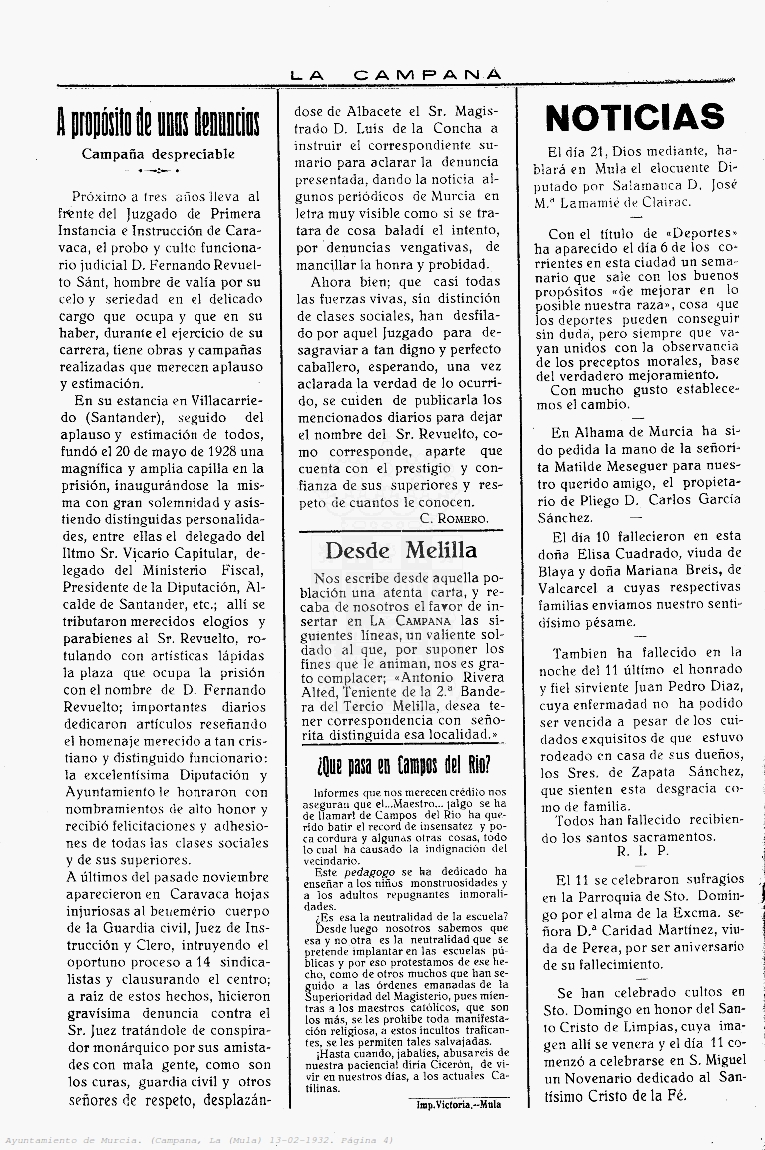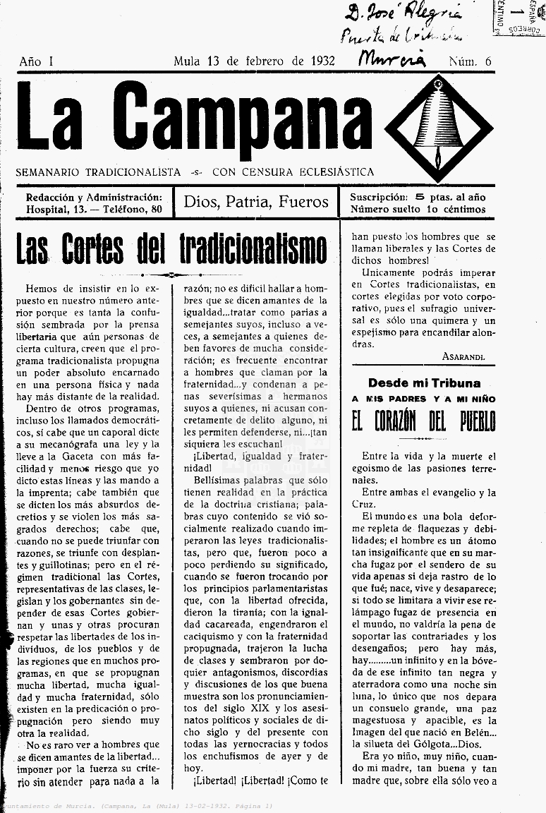Periodico de Mula La Campana nº6 13 Febrero de 1932