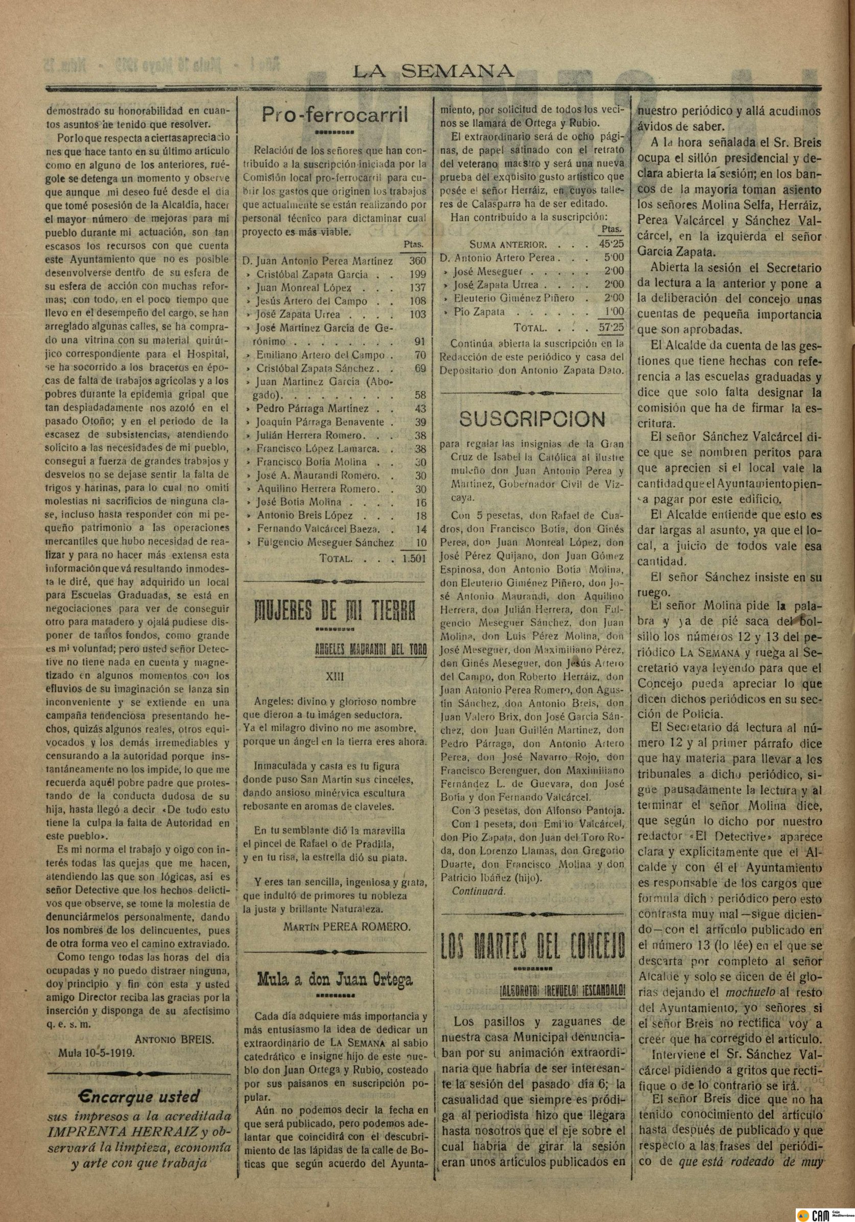 Periodico de Mula La Semana nº15 16 de Mayo de 1919