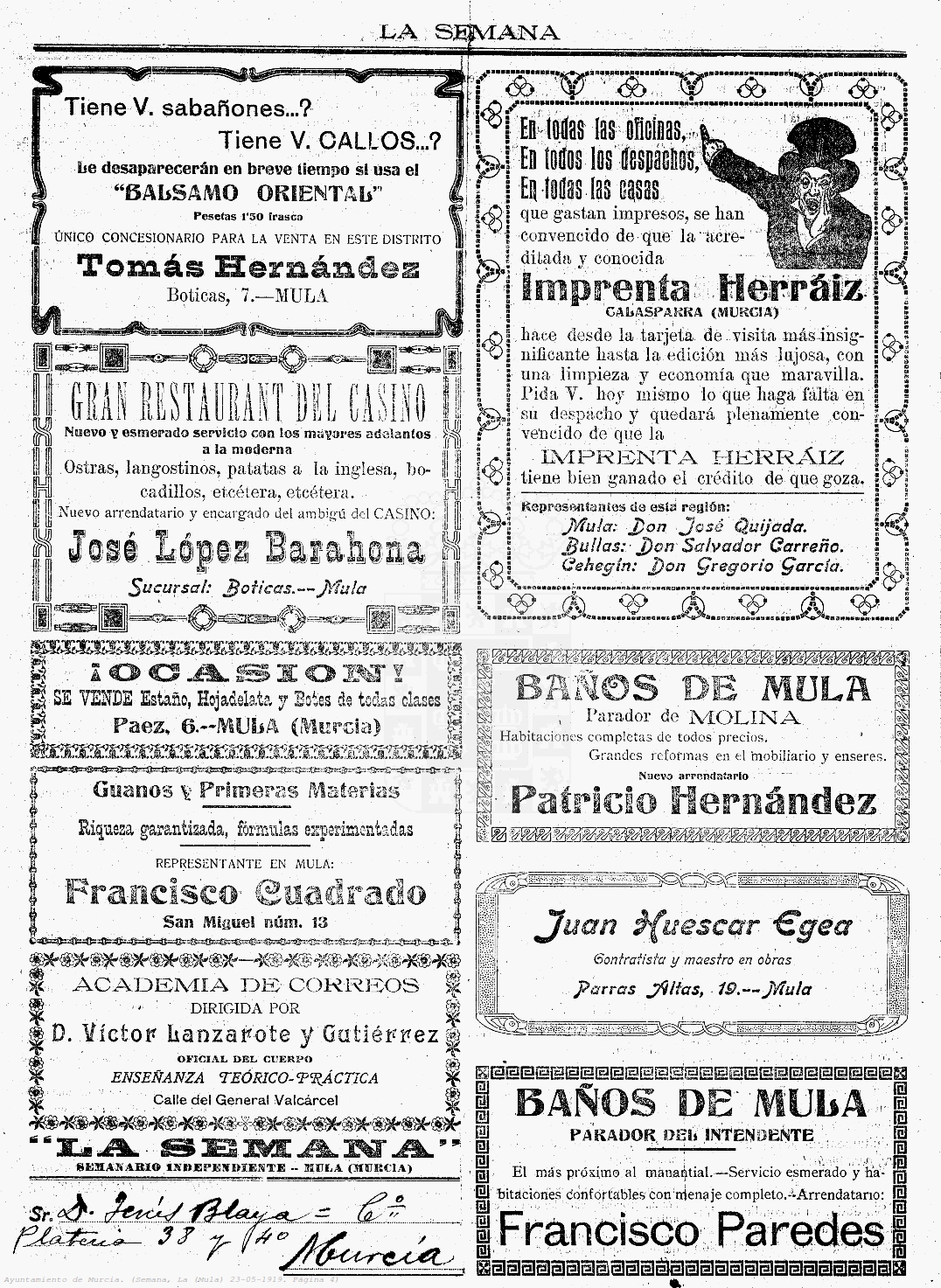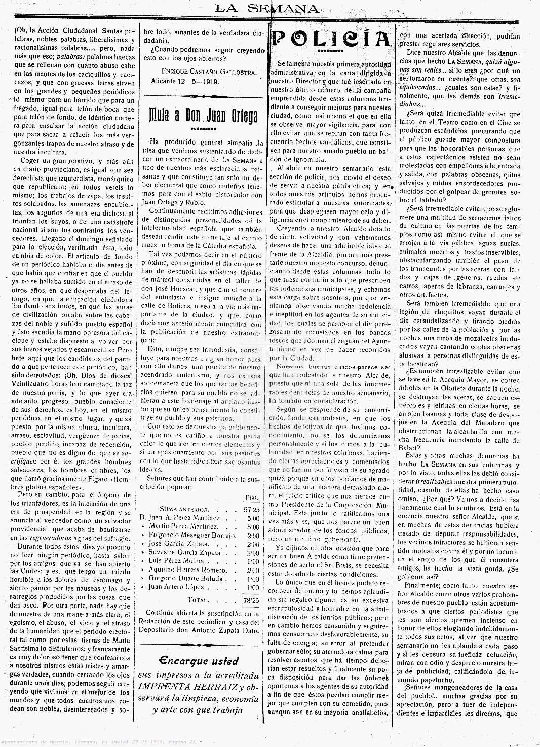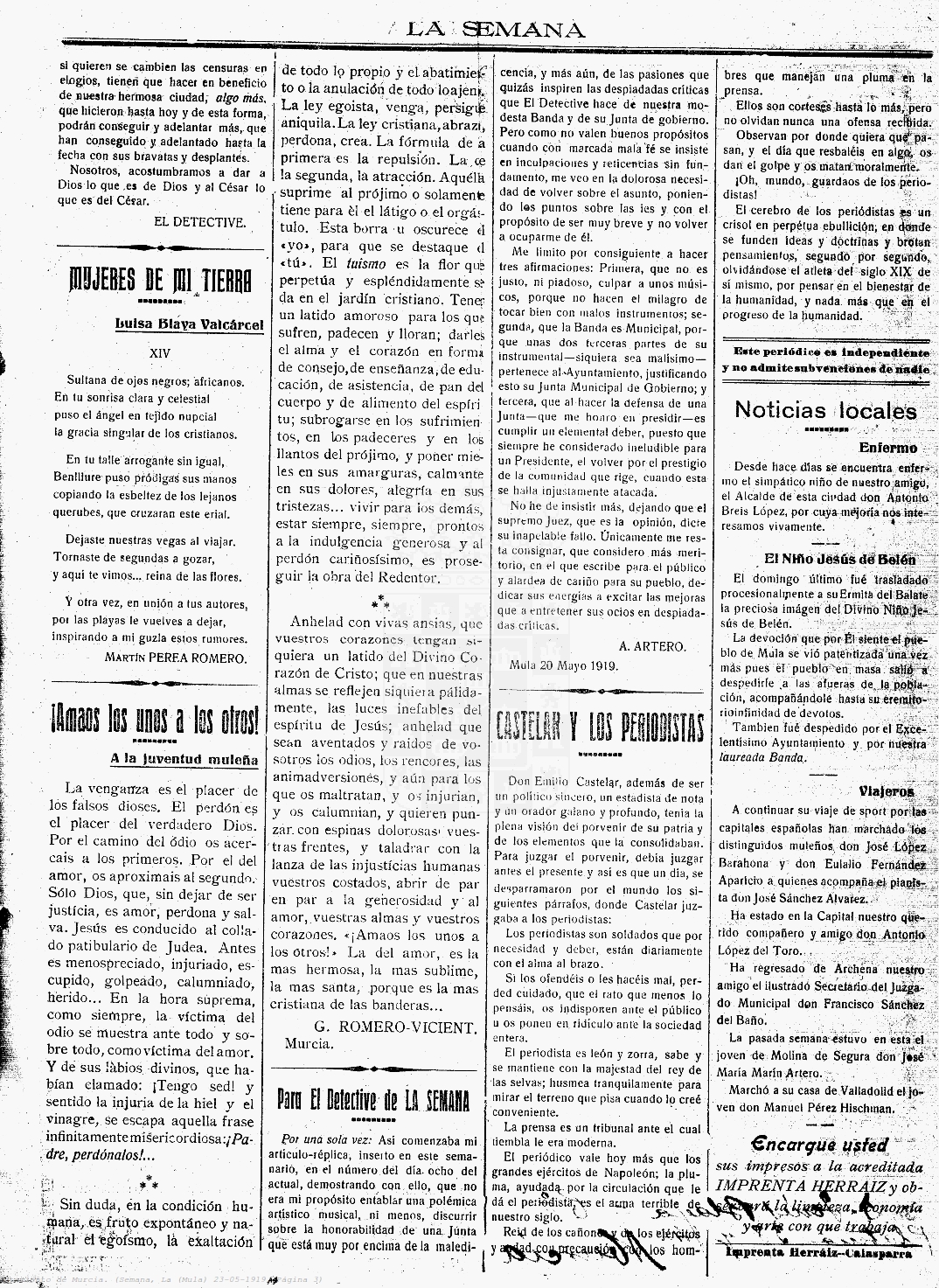 Periodico de Mula La Semana nº16 23 de Mayo de 1919