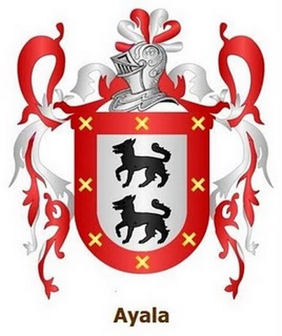 Escudo de plata y dos lobos pasantes de sable, uno en jefe y uno en punta; bordura de gules con ocho aspas de oro, tres en jefe, dos en los flancos y tres en la punta del escudo.