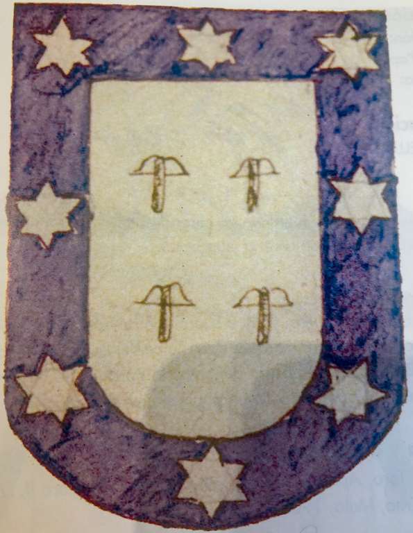 En campo de plata cuatro ballestas de su color y por orla ocho estrellas de plata en campo de azur.