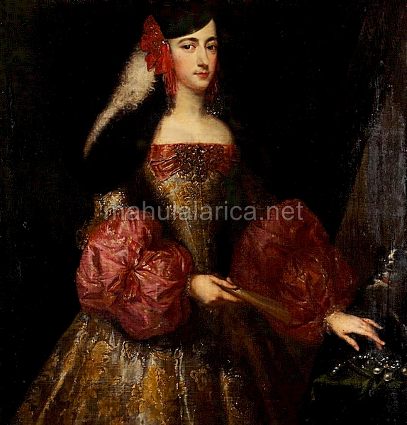 VIII .- Teresa Caterina Moncada de Aragón y Fajardo. Nació en  Madrid, siendo bautizada  en Santa Cruz el 4 Nov.  1665, falleció el 29 Ene.1728. VIII Marquesa de Los Vélez, IX Duquesa de Montalto, Bivona, VII  Marquesa de Molina, de Martorell, Condesa de Collesano, Adernò , Caltabellotta, en Sicilia, Grande de España  en 1713,  Baronesa del Grano, de Castellvell de Rosaners, de Molins de Rei, Sra. de  Misilcassimo, Cavisi, Muscini, Petralia Sottana e Soprana y Cristia. Casada en primeras nupcias en  1680, con Agustín Alfonso de Guzmán y Portocarrero, VI Marqués de la Algaba, y Ardales, IX Conde de Teba, Mariscal de Castilla, Alférez Mayor de Sevilla, fallecido el 15 Oct.1681, sin sucesión y en segundas con  José Fadrique Álvarez de Toledo y Fernández de Córdoba, VIII Marqués de Villafranca del Bierzo, y de Villa Nueva de Valdueza, V Duque de Fernandina, V  Príncipe de Montalbano, nacido  en Madrid el 3 Oct.1658, y fallecido el 30 Julio1728.