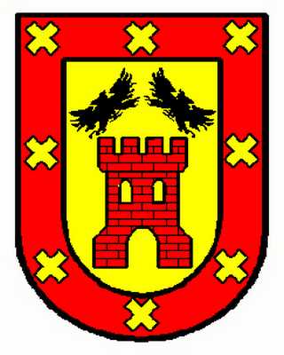 Las primitivas del antiguo solar del valle de Trasmiera, en campo de oro, una torre de gules y saliendo del homenaje, dos águilas de sable volantes; bordura de gules con ocho aspas de oro.