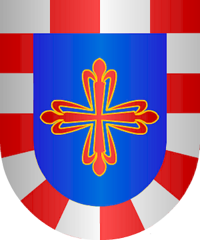 En campo de azur, una cruz floreteada la de calatrava, de gules, perfilada de oro; bordura jaquelada de plata y gules, en dos órdenes.