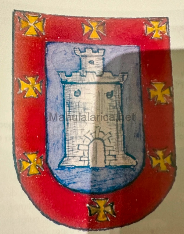 Otros traen: De gules, una cruz vacia de oro. Bordura de azur con ocho aspas de oro.