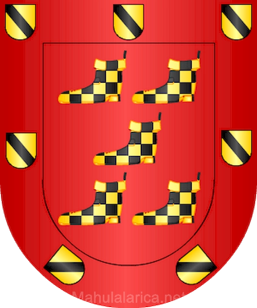 Las armas principales del apellido, según detalla Fernando González-Doria, son: en campo de gules, cinco zapatos jaquelados de plata y sable; bordura de gules con ocho escudetes de oro, cargado cada uno de una banda de sable. Estas armas se encuentran relacionadas en el "Diccionario heráldico y nobiliario de los reinos de España", en la página 798.