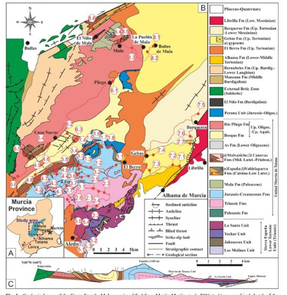 La clave para entender la minería de Mula y su comarca está en su geología. Según el Instituto Geológico y Minero de España (IGME), la Región de Murcia debe su extraordinaria diversidad mineral al choque de las placas tectónicas Africana e Ibérica, proceso que formó las Cordilleras Béticas y generó numerosos depósitos minerales en toda la región. Este mismo proceso explica los fenómenos geotérmicos asociados a las fallas activas de la zona, entre los que destacan los Baños Termales de Mula, aprovechados ya por los romanos y hoy referente indiscutible de la comarca.