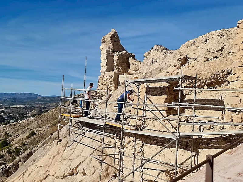 A media ladera se extendía el albacar, una zona intermedia que hacía las veces de refugio en momentos de peligro: allí se recogía el ganado, se protegía a la población más vulnerable y se guardaban los enseres de valor cuando el enemigo se acercaba. De todo lo que fue la Mula islámica, el albacar es lo que mejor ha sobrevivido al tiempo: sus murallas de tapia calicostrada una técnica constructiva característica del sureste hispanomusulmán permanecen en pie, y en su interior se conserva un gran