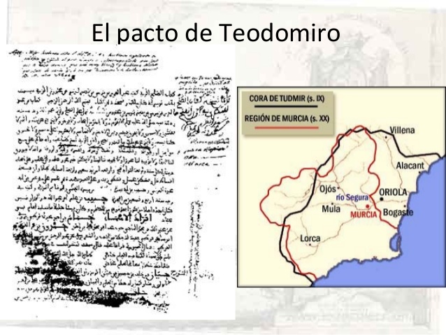 En abril o mayo de 713, el noble visigodo Teodomiro, gobernador de la región del sureste conocida como Spania o Aurariola, se encontró en una posición sin salida. Las tropas árabes de Abd al-Aziz hijo de Musa Ibn Nusair, el gran conquistador del norte de África habían arrasado la Península en apenas dos años. Resistir era inútil. Pero Teodomiro no era un hombre que se rindiera sin condiciones.
