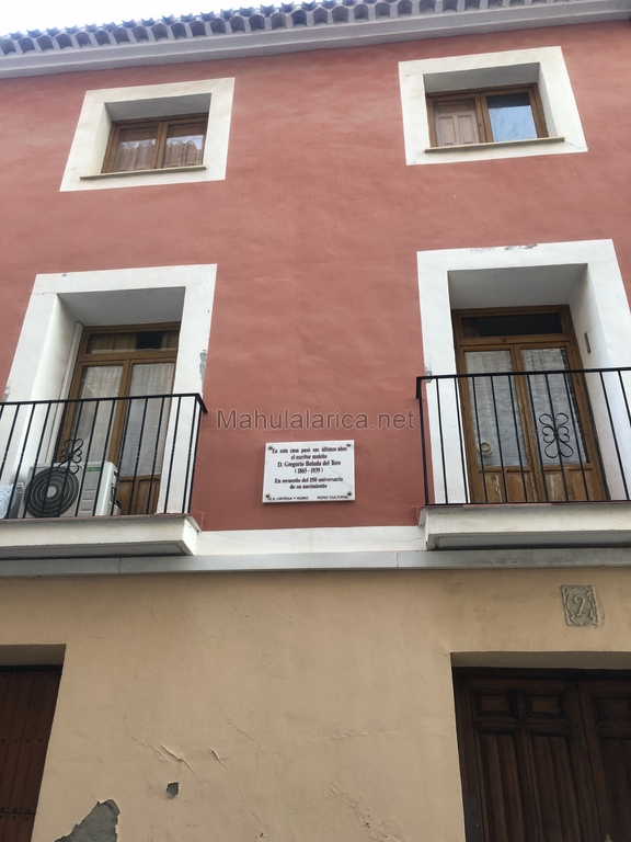 Una placa en la casa natal recuerda al investigador y poeta Gregorio Boluda  en Mula,al acto asistió el cronista oficial de la localidad, el académico Juan González Castaño ,estudioso de la obra de este escritor y poeta.