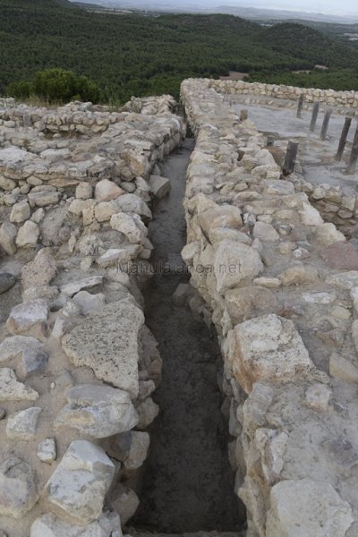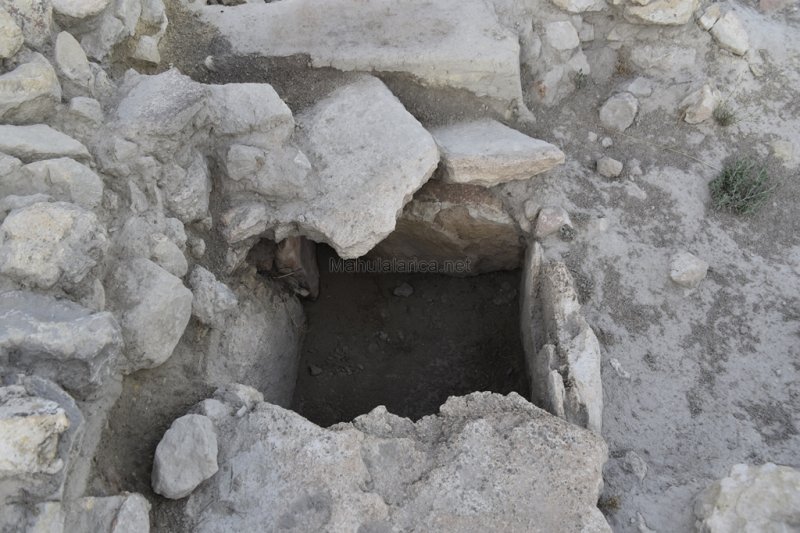 Se logró descubrir una cisterna de abastecimiento de agua de forma ovalada, que pudo contener hasta 12.000 litros de agua, sus muros estaban recubiertos por espesas capas de arcillas y margas que servían como impermeabilizantes.