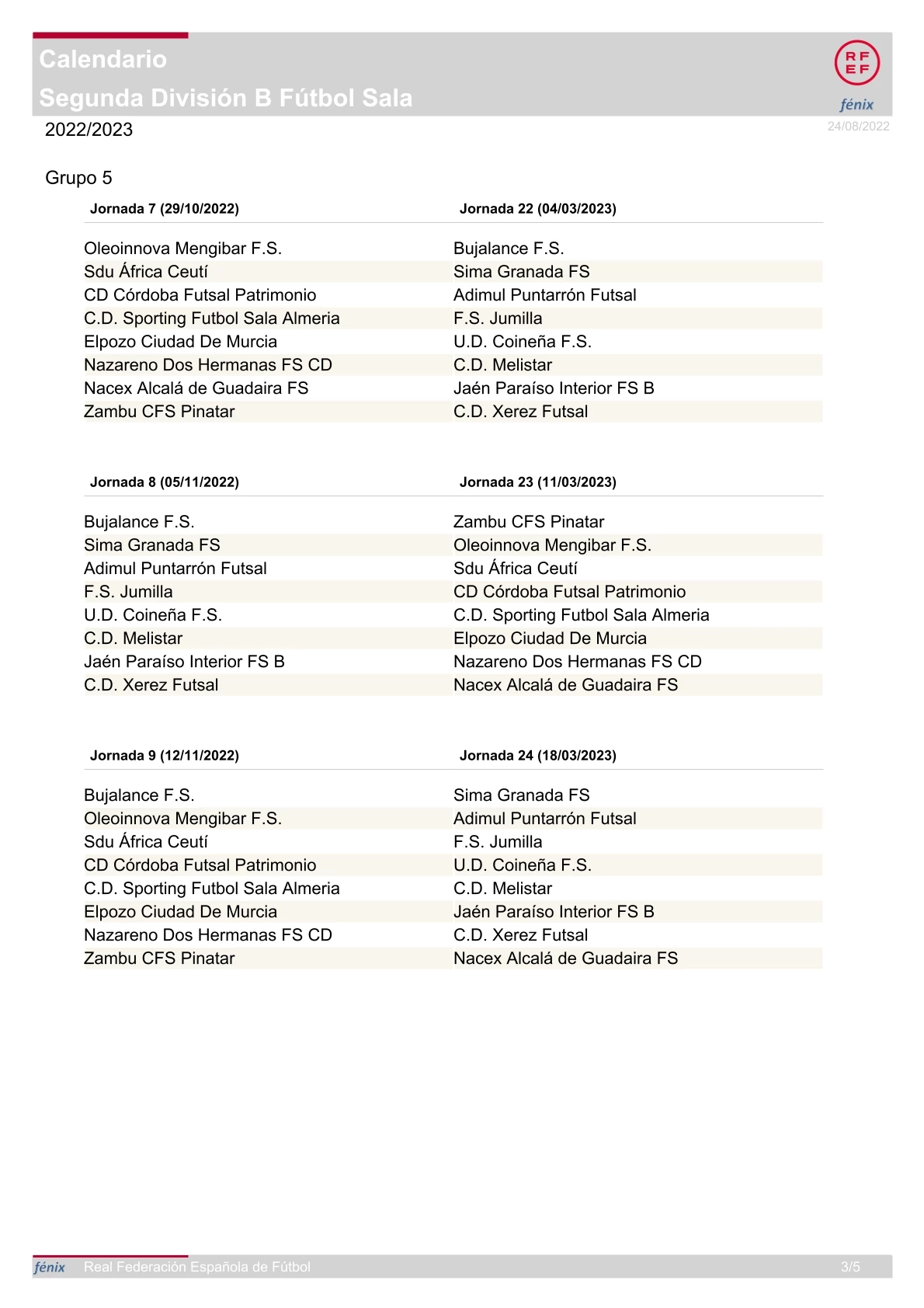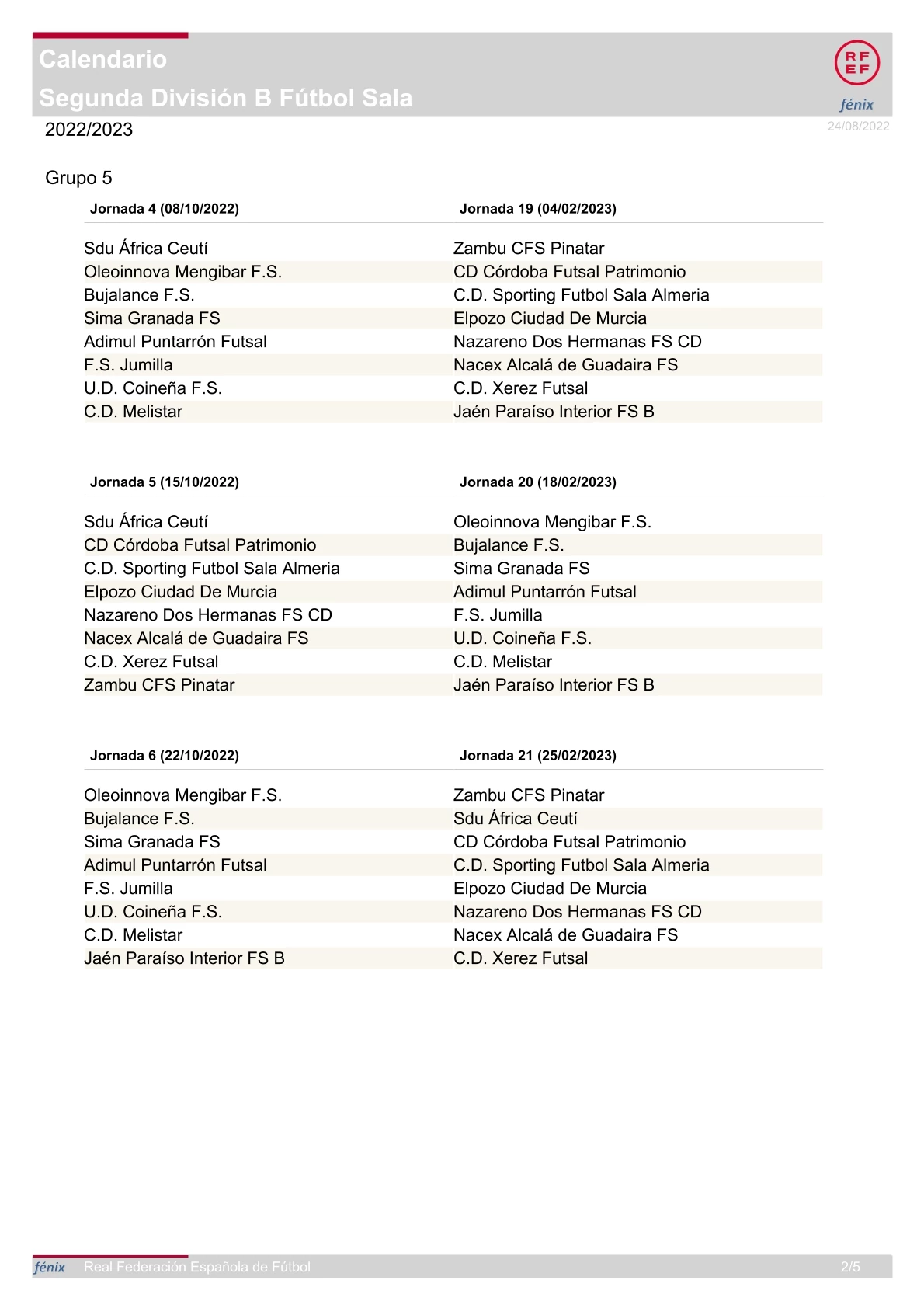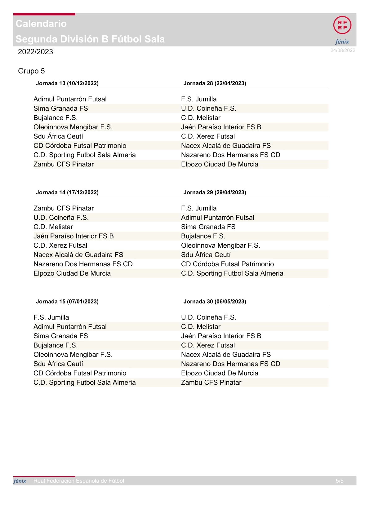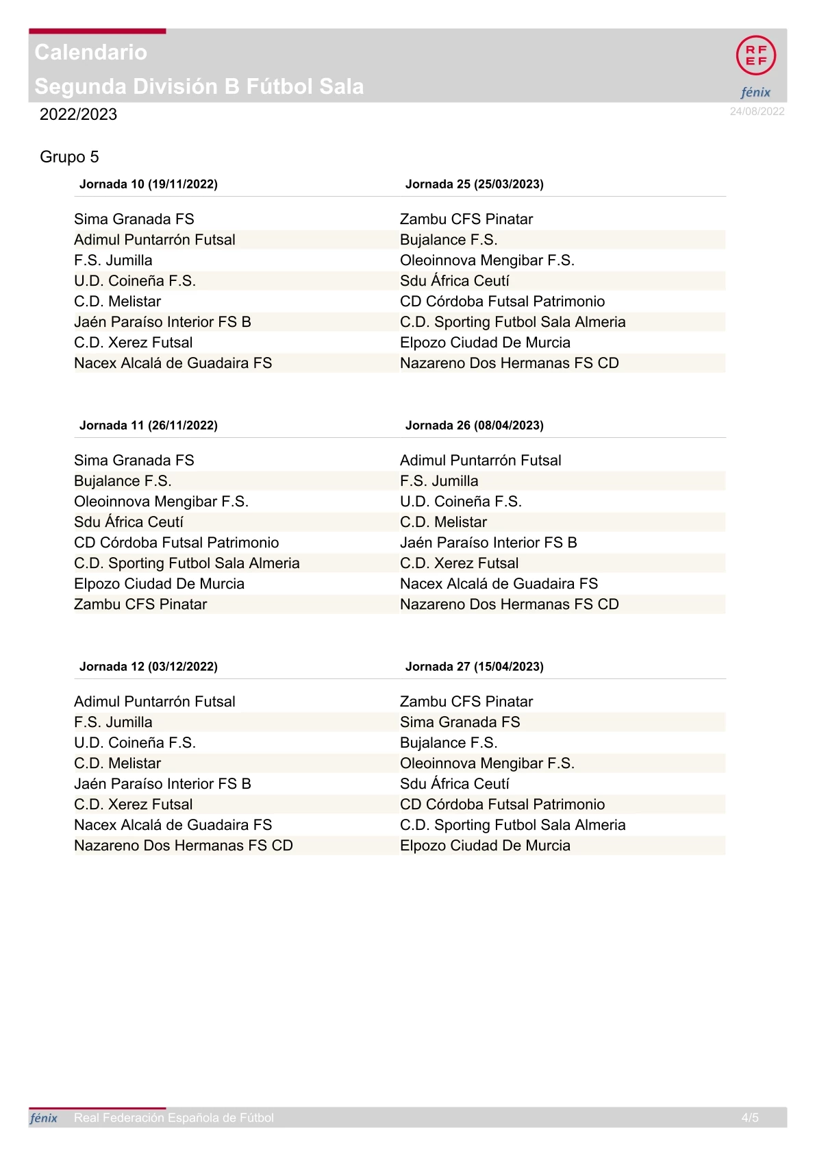 Calendario del Adimul Puntarrón Futsal Grupo 5 de Segunda B Fútbol Sala 2022-2023.