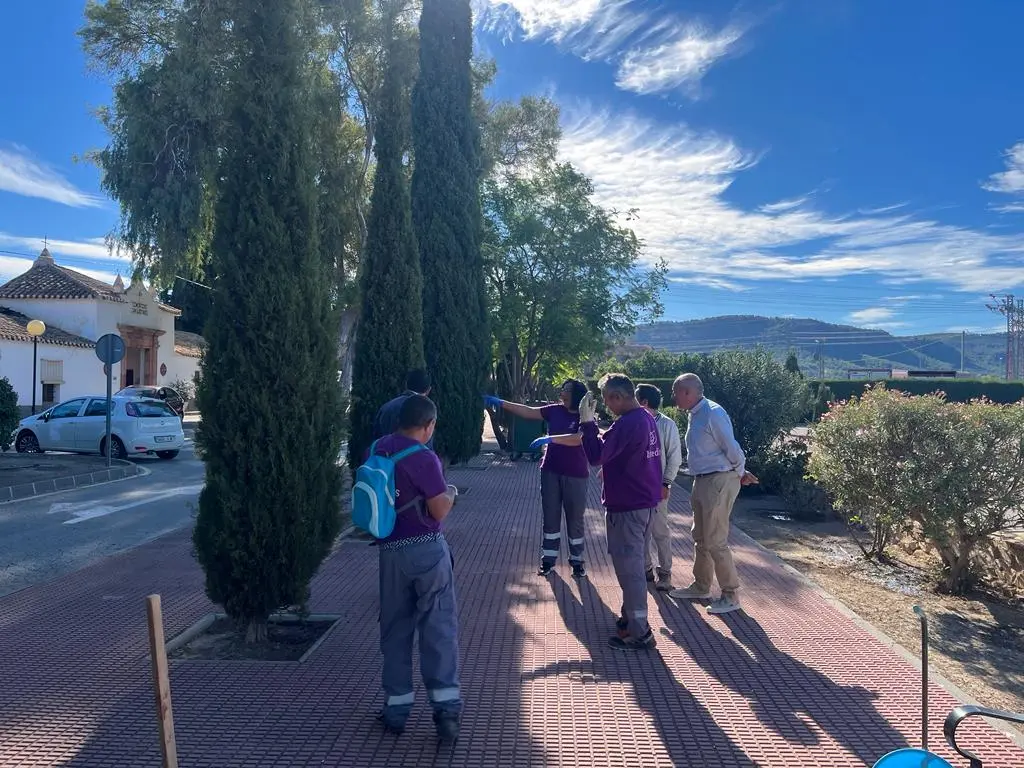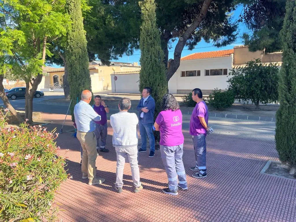 El alcalde y el concejal han intercambiado impresiones con los trabajadores de la Asociación Intedis quienes, mediante un convenio con el Ayuntamiento, se encargan de realizar labores de mejora en el cementerio y sus alrededores: limpieza, mantenimiento del aparcamiento y trabajos de pintura en determinadas zonas. Asimismo, el primer edil municipal ha manifestado su satisfacción por las tareas realizadas y el estado actual del cementerio.