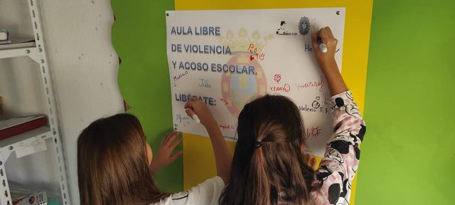 Asimismo, firmaron un diploma en el que declaraban el aula como un espacio libre de acoso escolar.