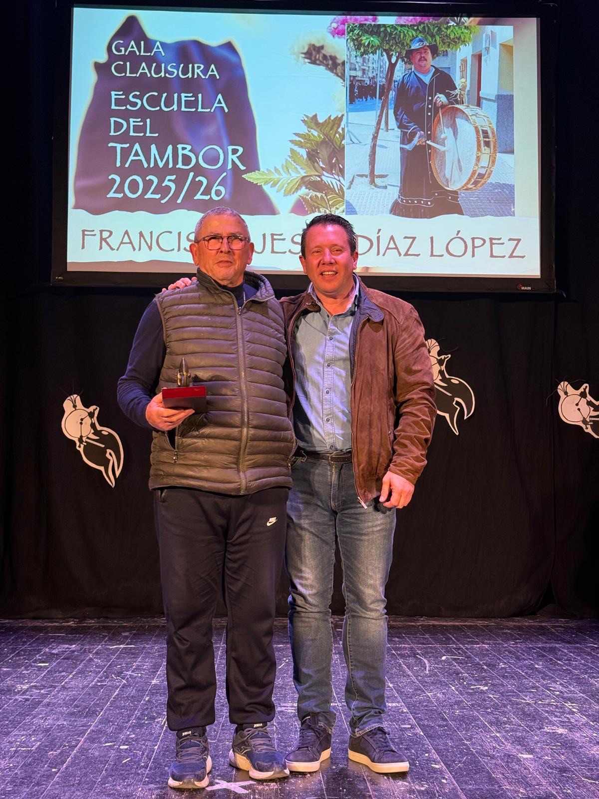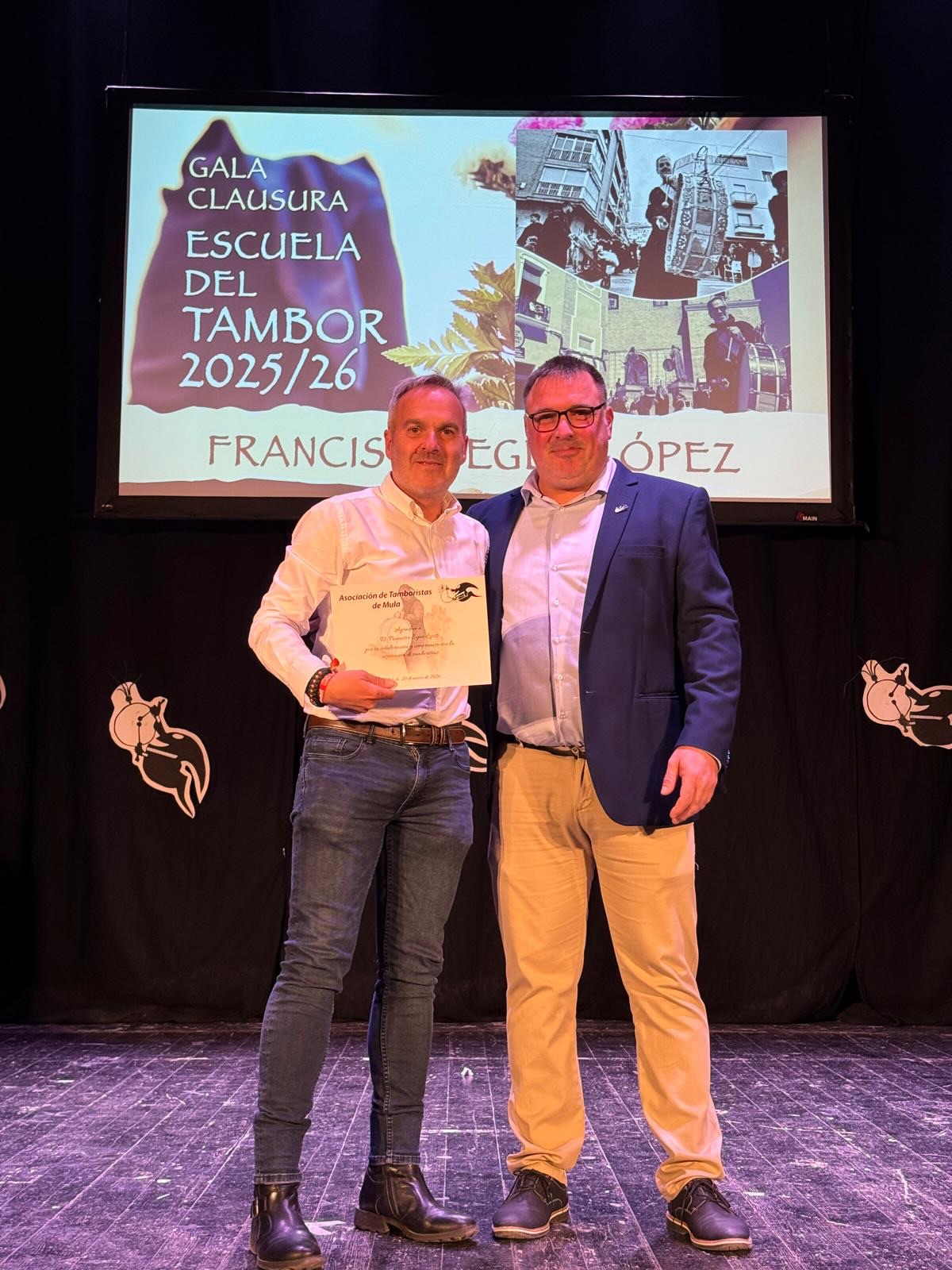La velada estuvo marcada por un momento de profunda emoción: el homenaje a los tamboristas muleños que ya no están. A través de una proyección audiovisual y la entrega de detalles conmemorativos, se rindió tributo a Adrián Díaz López y a Pedro Piñero, "Perico", en un reconocimiento que se hizo extensivo a todos cuantos han formado parte de la historia del tambor en Mula.