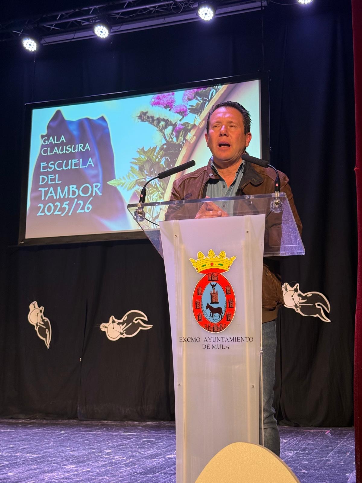 El alcalde, Juan Jesús Moreno, tomó la palabra para subrayar el valor de esta escuela como garante de continuidad: "Cada toque de tambor es memoria, identidad y futuro. Y esta Escuela es la garantía de que la tradición seguirá viva, porque aquí se aprende a tocar, pero sobre todo se aprende a sentir Mula". El primer edil agradeció expresamente el trabajo de la Asociación de Tamboristas y el compromiso de las familias a lo largo de todo el curso.