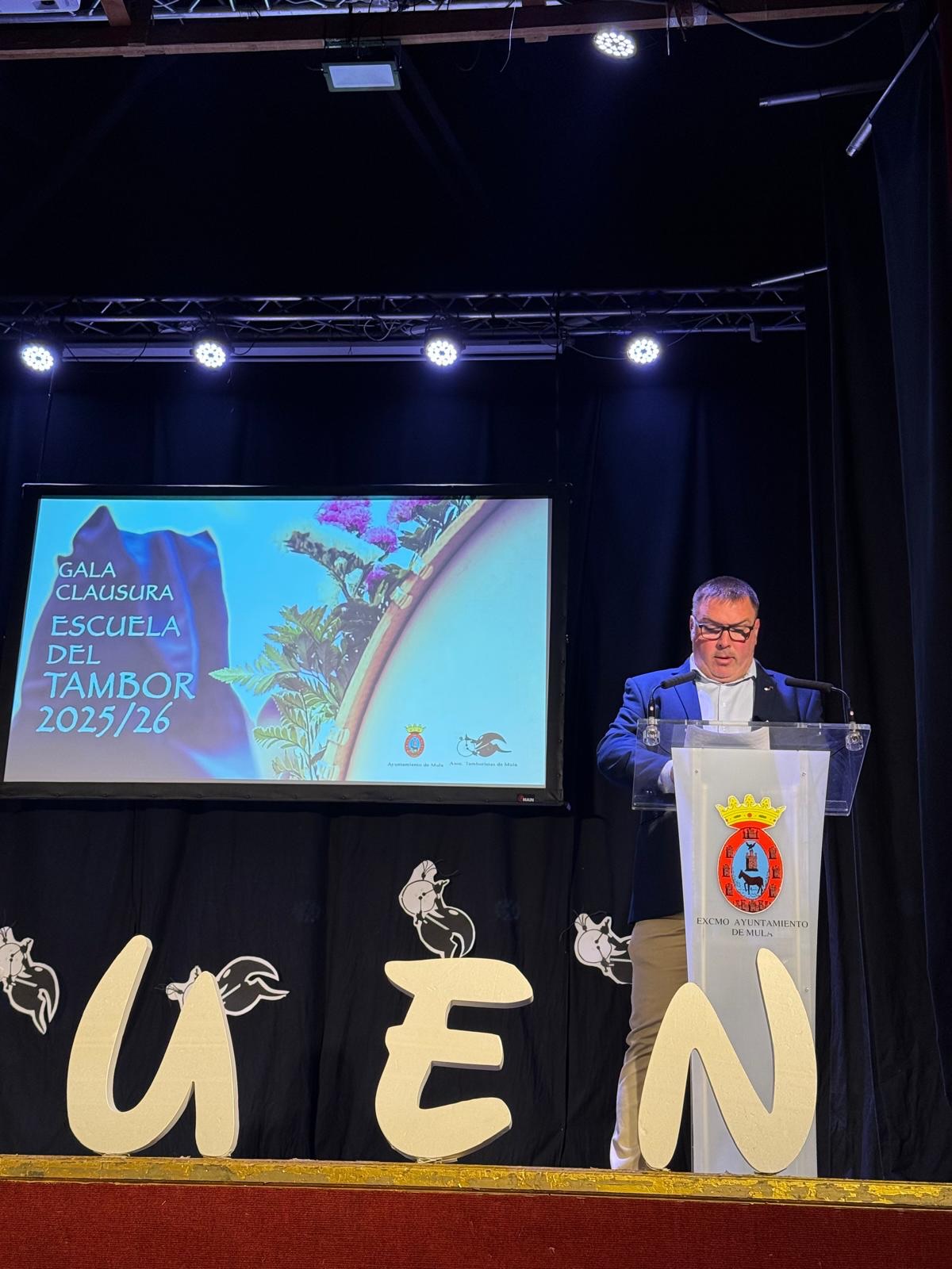 El Teatro Lope de Vega de Mula acogió esta tarde la Gala de Clausura de la Escuela del Tambor 2026, un acto que reunió a alumnos, familias, tamboristas y autoridades en torno a una de las tradiciones más arraigadas e identitarias del municipio.