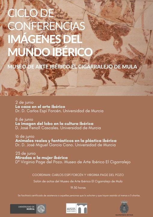 Continuando con el Ciclo de Conferencias “Imágenes del mundo ibérico”, mañana jueves, 16 de junio, a las 19:30 h, se impartirá la tercera conferencia "Animales reales y fantásticos en la plástica ibérica", a cargo del Dr. D. José Miguel García Cano (Universidad de Murcia).