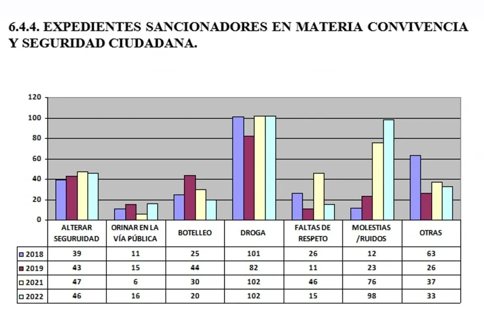 Los servicios de Policía Administrativa han realizado 377 intervenciones relacionadas con ruidos, 228 con animales, 58 por vehículos abandonados, 18 por incidentes causados por vertidos en la vía pública, 36 por controles de obras y licencias. Así como se han gestionado 273 ocupaciones de la vía pública, 42 tarjetas de personas con discapacidad y 30 informes de convivencia.