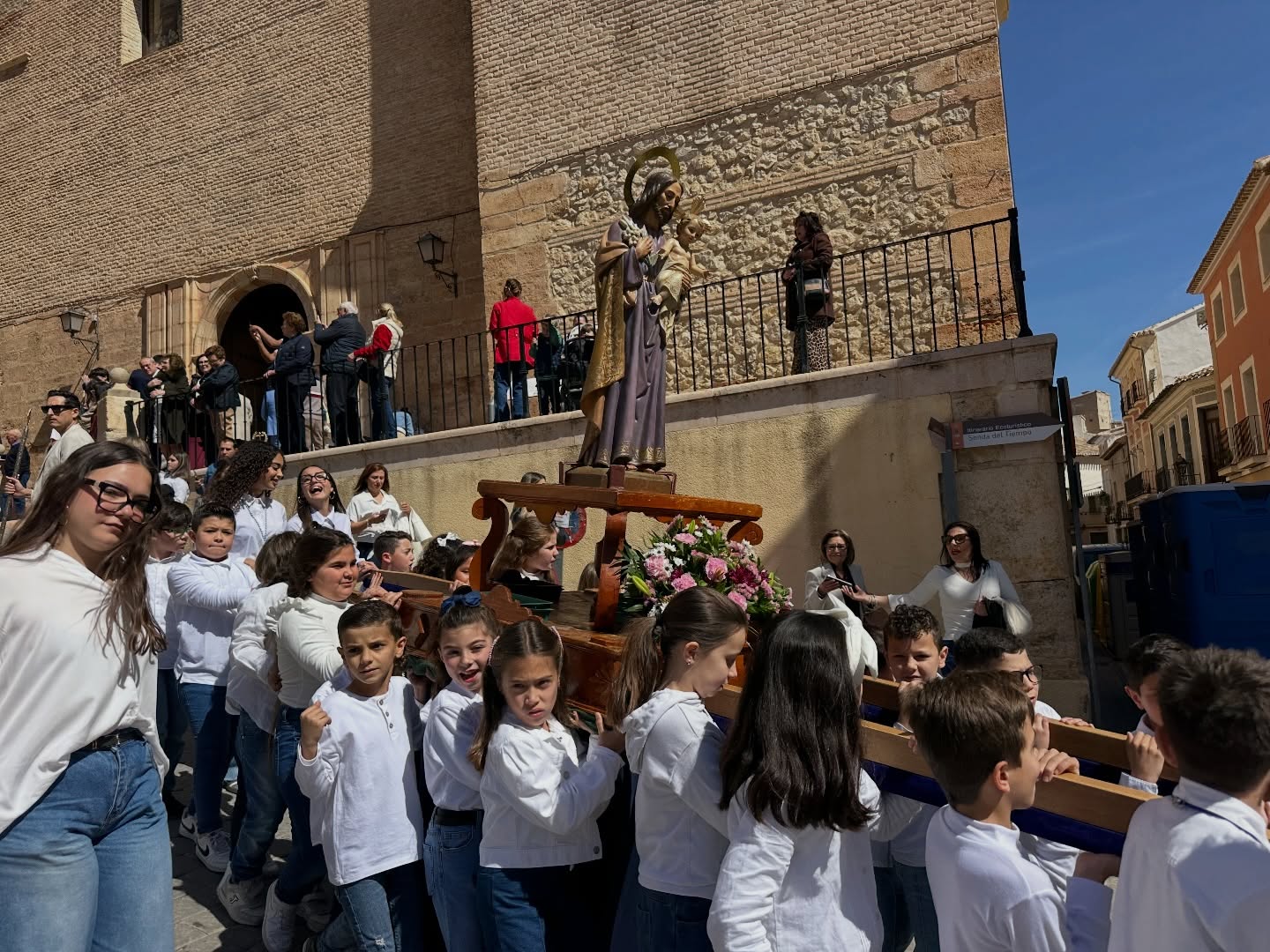 La jornada comenzó con la misa solemne en la Iglesia de San Miguel, presidida en honor al Patrón, tras la cual tuvo lugar la tradicional procesión por las calles de la localidad. En el cortejo procesional destacó la emotiva participación de los niños y niñas de catequesis, que portaron el trono pequeño de San José, mientras que la Hermandad de San José, como cada año, fue la encargada de conducir el trono principal.