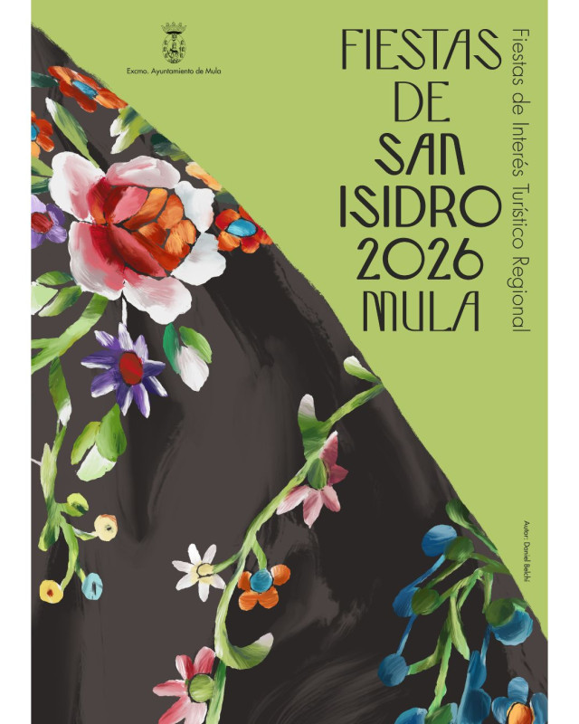 Por su parte, el autor del cartel, Daniel Belchí, ha explicado que su obra “De la mala hierba a la flor” se inspira en la relación entre el ser humano y la naturaleza, y que para crearla investigó el origen de la fiesta a través de imágenes antiguas y elementos tradicionales. En ese proceso, encontró su hilo conductor en la indumentaria, especialmente en el mantón, y en la fuerza plástica de lo floral y vegetal. El resultado es una pieza de pintura digital, con colores vivos y un juego de texturas que dialoga con el bordado y rinde homenaje a la tradición desde una mirada contemporánea.