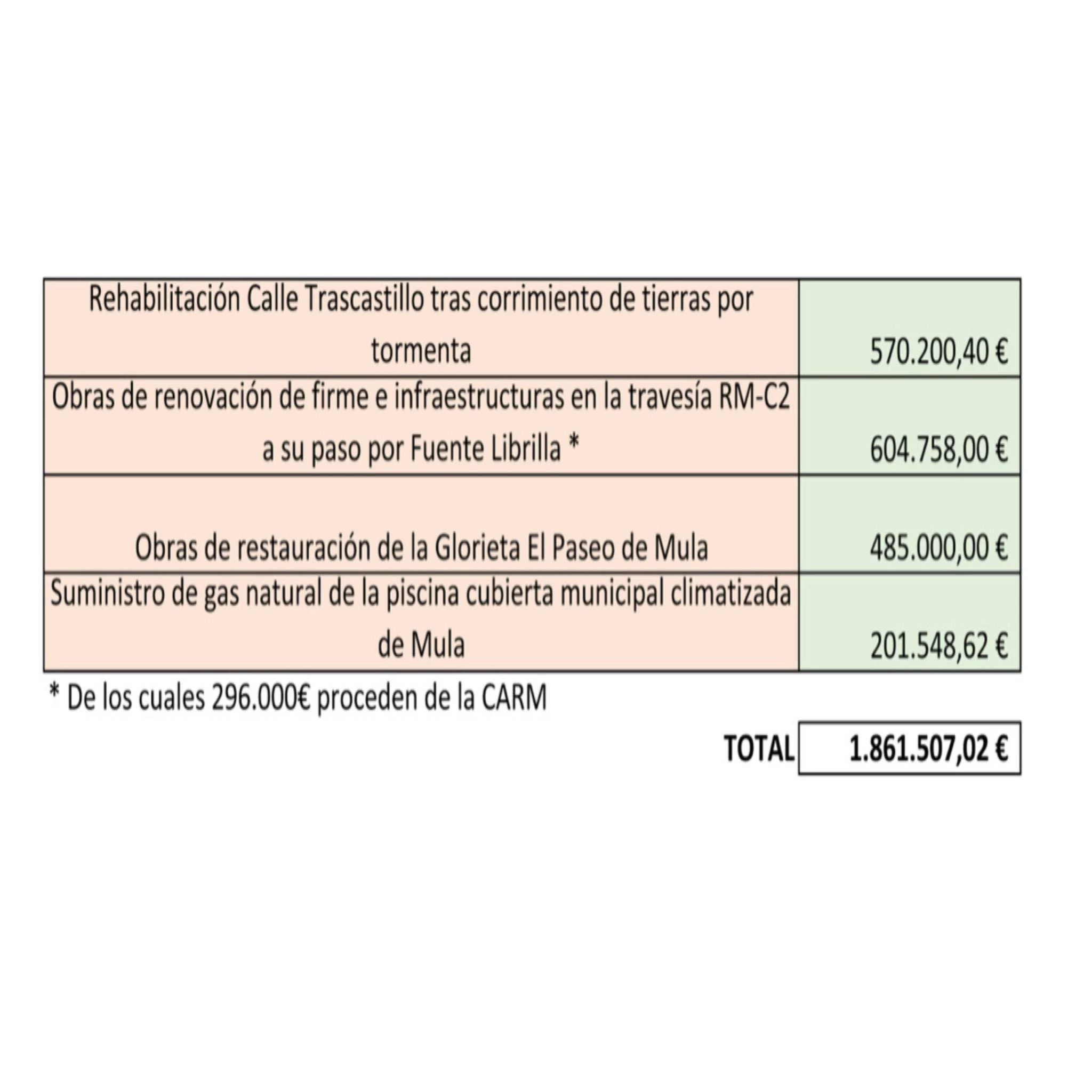 Por hacer una recopilación de las obras y actuaciones:1. Rehabilitación Calle Trascastillo tras corrimiento de tierras por tormenta por 570.200,40€. Esta es una obra de emergencia que, consideramos, se debe acometer dada la situación de la zona afectada. En esta actuación debemos resaltar que se está ejecutando sin cabida presupuestaria por el total, es decir, sin estar incluida en los presupuestos municipales. Pero esto no parece preocupar al Alcalde y a su concejala de Hacienda.2. Obras de renovación de firme e infraestructuras en la travesía RM-C2 a su paso por Fuente Librilla en licitación por 604.758,00 €. Esta obra surge como consecuencia de un convenio con la Comunidad Autónoma en la que se cede la titularidad de la travesía al Ayuntamiento y se le entregan 296.000€ para su acondicionamiento. El resto (más de 300.000€) deben aportarlo las arcas municipales. En este caso consideramos que era una oportunidad para adecuar esta vía a los vecinos de La Fuente pero consideramos inadecuada su financiación con cargo al Canon del suministro de aguas por Aqualia. Es decir, se financia con el canon que está destinado a la adecuación de la red, recogida de aguas y alcantarillado exclusivamente, dejando al pueblo de Mula sin margen de maniobra en caso de una obra de emergencia en esta área.3. Suministro de gas natural de la piscina cubierta municipal climatizada de Mula en licitación por 201.548,62 €. Consideramos que es un gasto inadecuado ya que en IU Verdes Mula llevamos años insistiendo en la necesidad de inversión en eficiencia energética en la piscina climatizada para reducir costes haciendo mejoras en aislamiento, reducción del vaso de la piscina reduciendo el volumen de agua a calentar, climatización basada en energía fotovoltaica, cambio de caldera de gas por energía limpia como podría ser la biomasa etc. En cambio, el equipo de gobierno decidió abrir estas instalaciones con una caldera de gas en plena crisis energética. Es un ejemplo más de lo visionarios que son nuestros dirigentes.4. Por último, Obras de restauración de la Glorieta El Paseo de Mula en licitación por 485.000€. Evidentemente es una obra que lleva décadas comentándose sobre su necesidad pero consideramos que, dado el contexto económico y el montante de otras actuaciones prioritarias por razones de emergencia y oportunidad, esta actuación se podría haber dejado para el ejercicio 2023 o 2024. Además para conseguir cabida presupuestaria, se ha suprimido una partida presupuestaria de 102.000€ para adecuación de caminos rurales. Es decir, se han dejado de arreglar caminos rurales de huerta por más de 100.000€ para gastar en adecuar la glorieta.Así consideramos que el gobierno municipal del PSOE con su alcalde al frente está actuando con irresponsabilidad en el área económica ya que el contexto actual y la coyuntura económica es bastante imprevisible y conviene ser moderados en el gasto y previsores en su ejecución.Las necesidades de un ayuntamiento son ilimitadas pero sus recursos financieros son escasos, esto nos debe hacer actuar con la prudencia necesaria y priorizando las inversiones económicas. Por eso creemos que, especialmente, la obra de remodelación de El Paseo es una obra electoralista que ha sido sacada a licitación incluso antes de tener presupuesto disponible. La razón principal es que el calendario manda y en mayo de 2023 son las elecciones municipales, por ello si se deja esta actuación para el año que viene o siguiente no podrán “rentabilizarla” electoralmente.Nos encontramos sometidos a un plan de ajuste hasta el año 2036 y el Ministerio de Hacienda, año tras año, nos impone medidas severas de contención del gasto que nos limitan el margen de actuación económico. Dadas las últimas decisiones tomadas y la línea de gasto del gobierno socialista de Mula, las próximas restricciones para el presupuesto del año 2023 pueden ser más restrictivas aún y no tendremos margen de maniobra para cumplirlas ya que se pretende gastar todo y más antes de mayo de 2023. Acto muy irresponsable del gobierno de Juan Jesús Moreno ya que traslada a la corporación venidera las consecuencias de sus actos en esta legislatura.El modo de entender la política como un gasto en obras y remodelaciones consideramos que está totalmente desfasado y es como se ha venido haciendo en las últimas décadas tanto por el Partido Popular como por el PSOE. Hacer grandes inversiones en los meses cercanos a las elecciones pone de manifiesto la incompetencia de los dirigentes municipales y la ausencia de proyecto más allá del desmesurado gasto en obras bien vistosas. Una buena gestión debe llevar a hacer del pueblo y pedanías zonas más habitables, creación de oportunidades laborales, mejora de la habitabilidad de barrios y pedanías, inversión en eficiencia que reduzcan costes etc… Pero no, aquí seguimos anclados en la gestión similar a los años 90 en donde el Alcalde invita y el pueblo Paga.