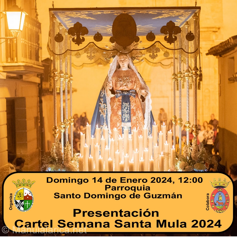 Sean todos invitados a asistir al acto de presentación del cartel anunciador de la Semana Santa Muleña 2024.