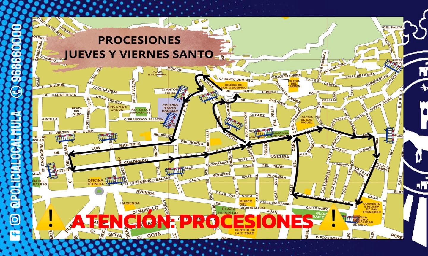 Durante ambos días se celebrarán las tradicionales procesiones, con salida prevista a las 19:30 horas desde la Parroquia de Santo Domingo, siguiendo el mismo itinerario: