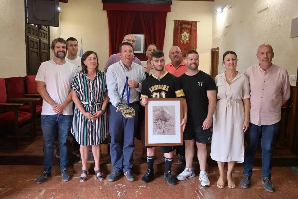 Éste recibía un presente de manos del alcalde en reconocimiento de todo el pueblo de Mula a sus grandes logros deportivos.