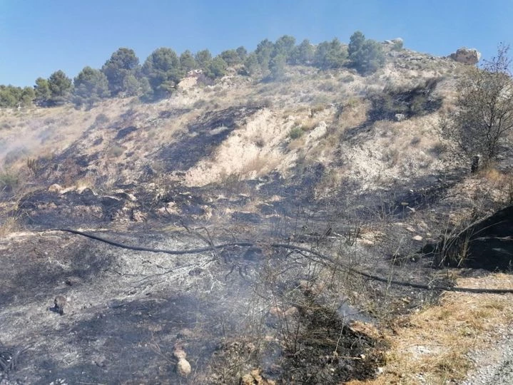 Bomberos, agentes forestales y medioambientales, así como policía local consiguen sofocar el fuego que se producía , sobre las 16´15 h, en una parte del monte de la subrida al porchete, en las cercanías del castillo de Mula. Han ardido unos 1500 metros cuadrados de matorral y monte bajo, en la orilla de la calle.