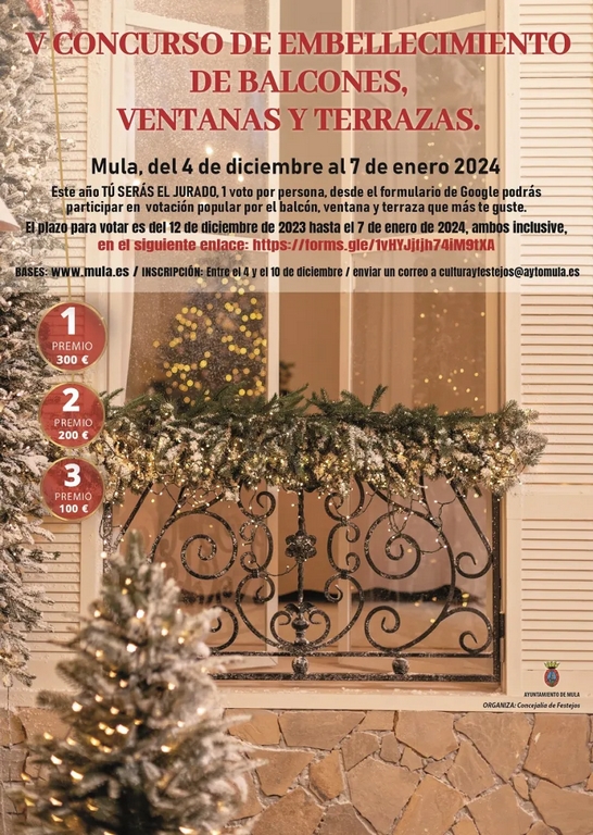 CONCURSO de EMBELLECIMIENTO de BALCONES, VENTANAS y TERRAZAS con MOTIVOS NAVIDEÑOS, para realzar el encanto de las calles y plazas de nuestra ciudad y municipio durante las Fiestas de Navidad 2023