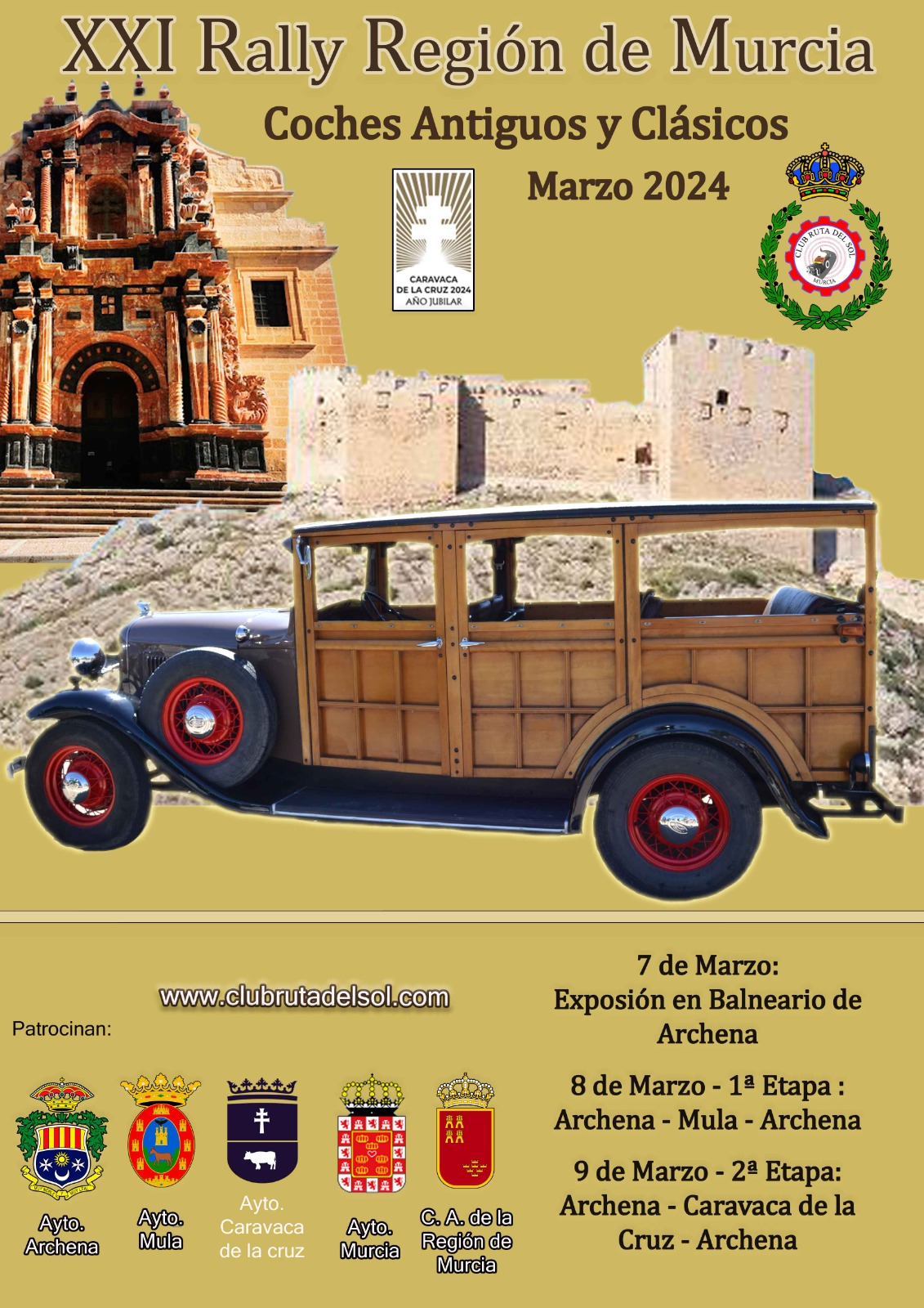 El XXI Rally Región de Murcia de Coches Antiguos y Clásicos, organizado por el Club Ruta del Sol, pasará por Mula en su primera etapa este viernes, 8 de marzo, recorriendo las principales calles de la ciudad.