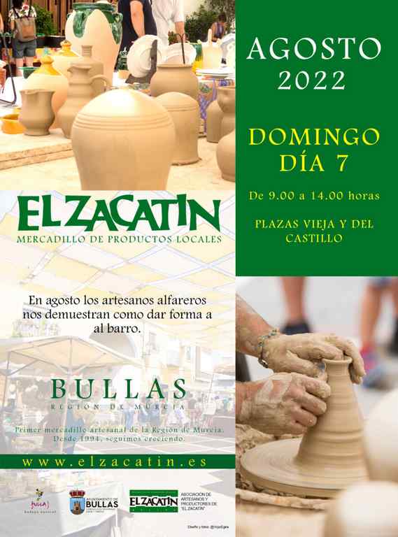 Recuerda, el próximo domingo, 7 de agosto, de 9.00 a 14.00 horas, en las céntricas plazas Vieja y del Castillo de Bullas, tienes una cita con el primer mercadillo artesanal de la Región de Murcia.