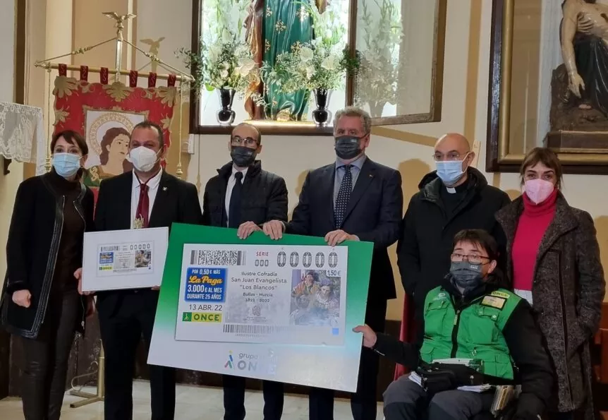 Esta mañana ha sido presentado en la Iglesia Parroquial de Ntra. Sra. del Rosario el cupón de la ONCE de día 13 de abril, Miércoles Santo, en el que aparecerá la Cofradía de San Juan Evangelista ‘Los Blancos’ de Bullas y que serán repartidos cinco millones y medio de cupones en toda España.
