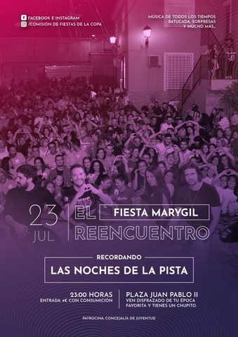 EL REENCUENTRO promete mucha diversión recordando las añoradas noches de la pista en las Fiestas de La Copa, con la mejor música de todos los tiempos, batucada, disfraces y muchas sorpresas