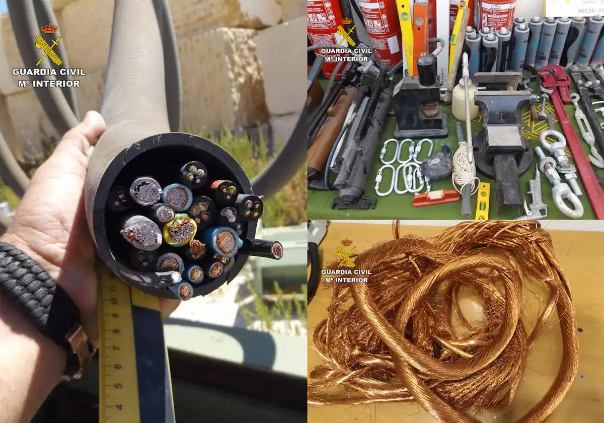 Hasta el momento, la Benemérita ha detenido a tres personas y ha recuperado varios cientos de metros de cobre, herramientas industriales, extintores y útiles supuestamente empleados para cometer los robos, según informaron fuentes del instituto Armado en un comunicado.