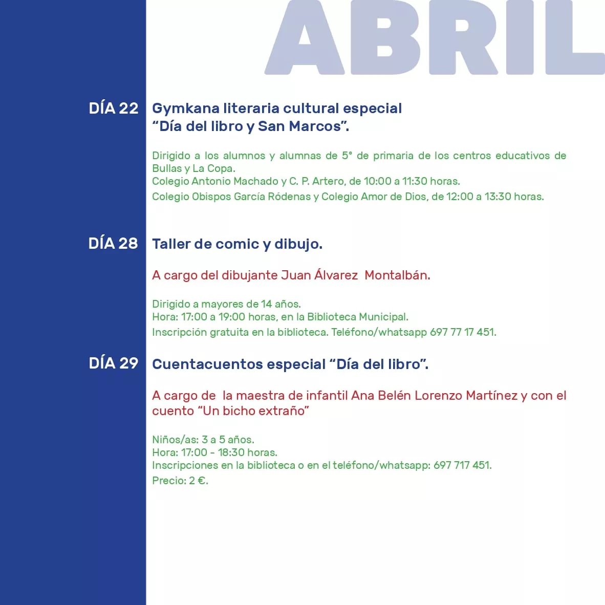 PROGRAMACIÓN DÍA DEL LIBRO 2022 EN BULLAS