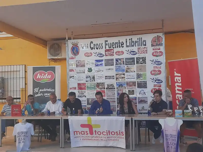 El alcalde de Mula, Juan Jesús Moreno, junto a miembros del equipo de Gobierno, y responsables de la organización, la Asociación Plataforma por el Medio Ambiente de Fuente Librilla, han presentado la VII edición del Cross Popular Fuente Librilla 11,5K que tendrá lugar el próximo 4 de septiembre y que en esta ocasión destinará sus fondos a los enfermos de Mastocitosis, una enfermedad que provoca la infiltración de la piel y otros órganos y tejidos por los mastocitos