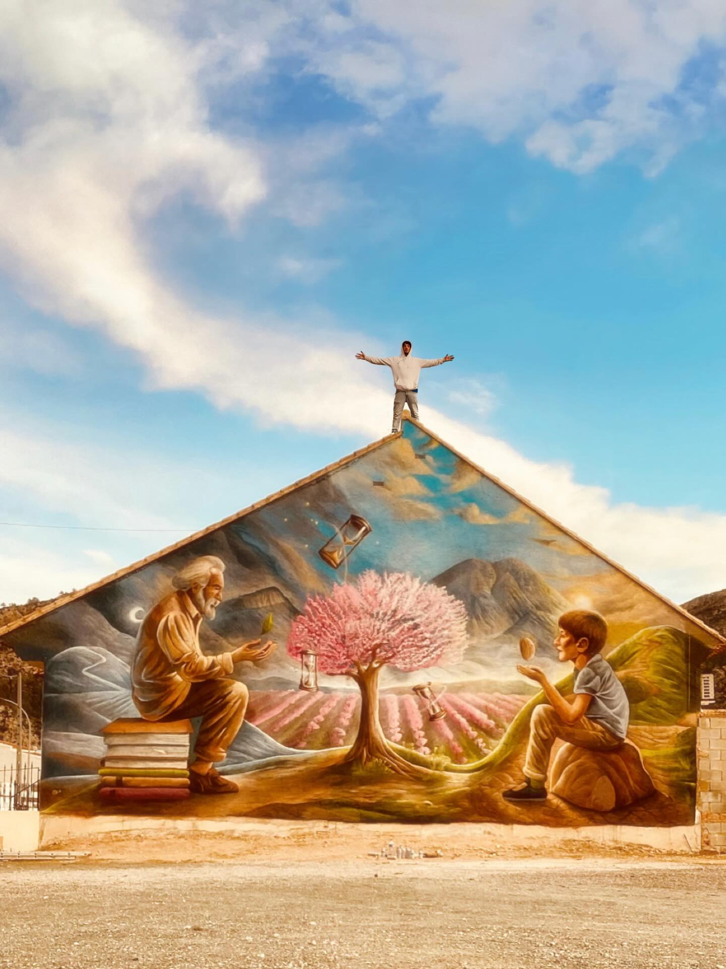Un mural con el sentido y sentimiento de lo rural, del campo, de la tradición, de la sierra y la agricultura, de la sabiduría del abuelo y la ilusión del nieto, del amor de los años, el almendro en flor y la esperanza de un pueblo pequeño pero grande en cerrazón.