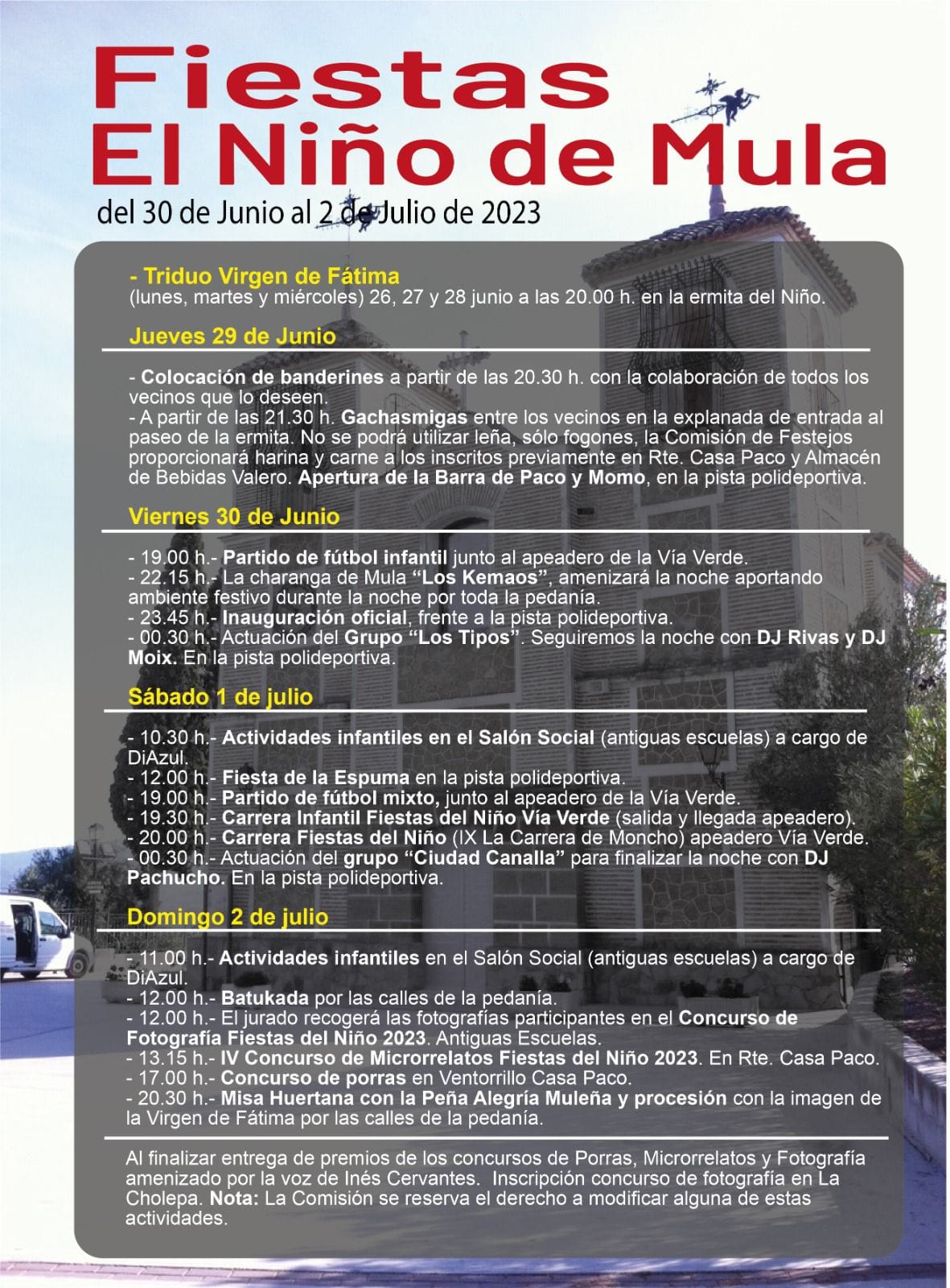 Programación de las fiestas del Niño de Mula 2023. Previous Article II feria agrícola de Casas Nuevas 2023. Next Article La Guardia Civil desmantela dos puntos de cultivo, elaboración y venta de varios tipos de droga en Albudeite Typography Smaller Small Medium Big Bigger Default Helvetica Segoe Georgia Times Reading Mode Share This Programación de las fiestas del Niño de Mula 2023. Previous Article II feria agrícola de Casas Nuevas 2023. Next Article La Guardia Civil desmantela dos puntos de cultivo, elaboración y venta de varios tipos de droga en Albudeite