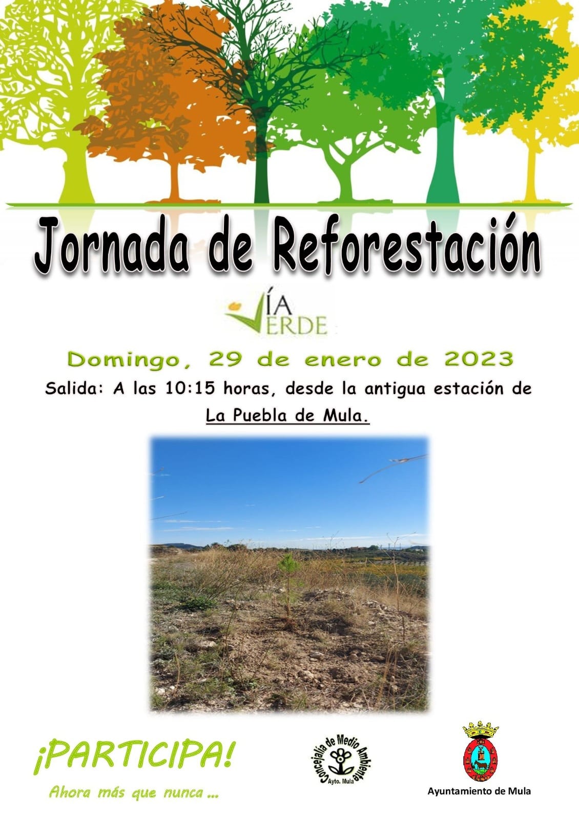 El lugar de encuentro será en la zona de recreo del antiguo apeadero del tren ubicado en el entorno de La Puebla a las 10:15 horas y comenzará con un taller familiar sobre introducción a la reforestación: identificación de especies, métodos de reforestación y beneficios ambientales. Al finalizar, se llevará a cabo la plantación de ejemplares de Pinus halepensis, Rhamnus alaternus y Quercus rotundifolia.