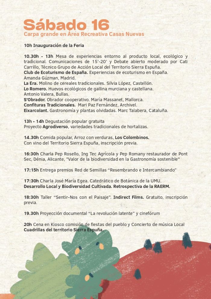 El Territorio Sierra Espuña vuelve a organizar su Feria de la Biodiversidad junto con la Red Murciana de Semillas, que este año coincide con las XXIV Feria Estatal de la Biodiversidad Cultivada. Es la cuarta vez que organizamos esta cita con la biodiversidad y su conservación. Una feria que congrega a asociaciones y entidades que trabajan por construir un territorio cada vez más sostenible y biodiverso. Con este evento pondremos en valor los productos locales ligados al territorio y abordaremos las necesidades de las Zonas Rurales del TSE.