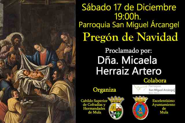 Os esperamos, pueblo de Mula, el próximo sábado 17 de diciembre. Tendremos la Santa Misa a las 19h y a continuación el pregón.